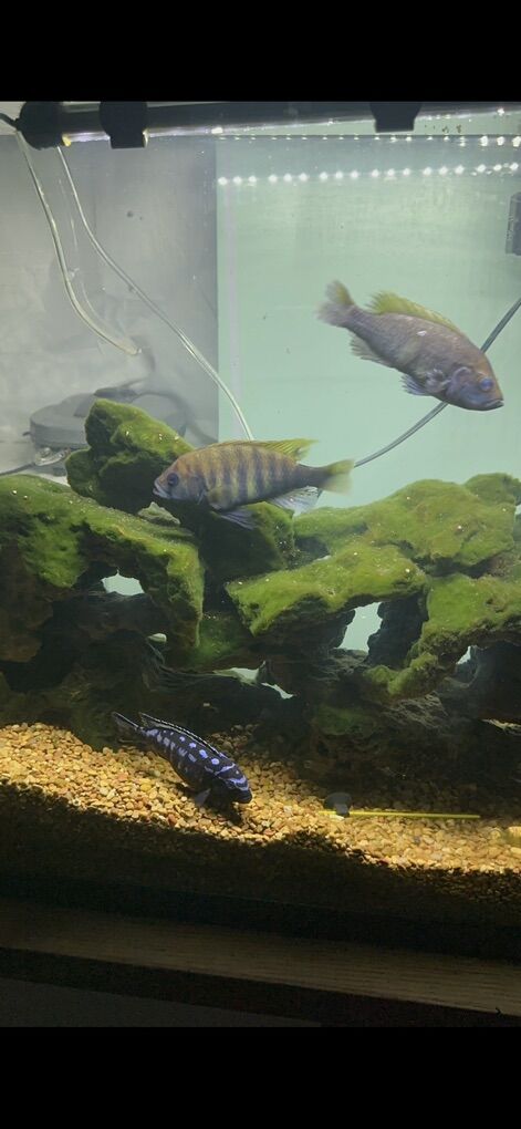 Venmo29 gallon cichlid fish tank. 6 cichlids and 2 sucker fish. Tank has a Fluval 50 gallon filter purchased last fall. Price includes Fish, rocks, nets, food, old and brand new air pump, cleaning vacuum and stand. Starter tank starts at $124 at PetSmart.