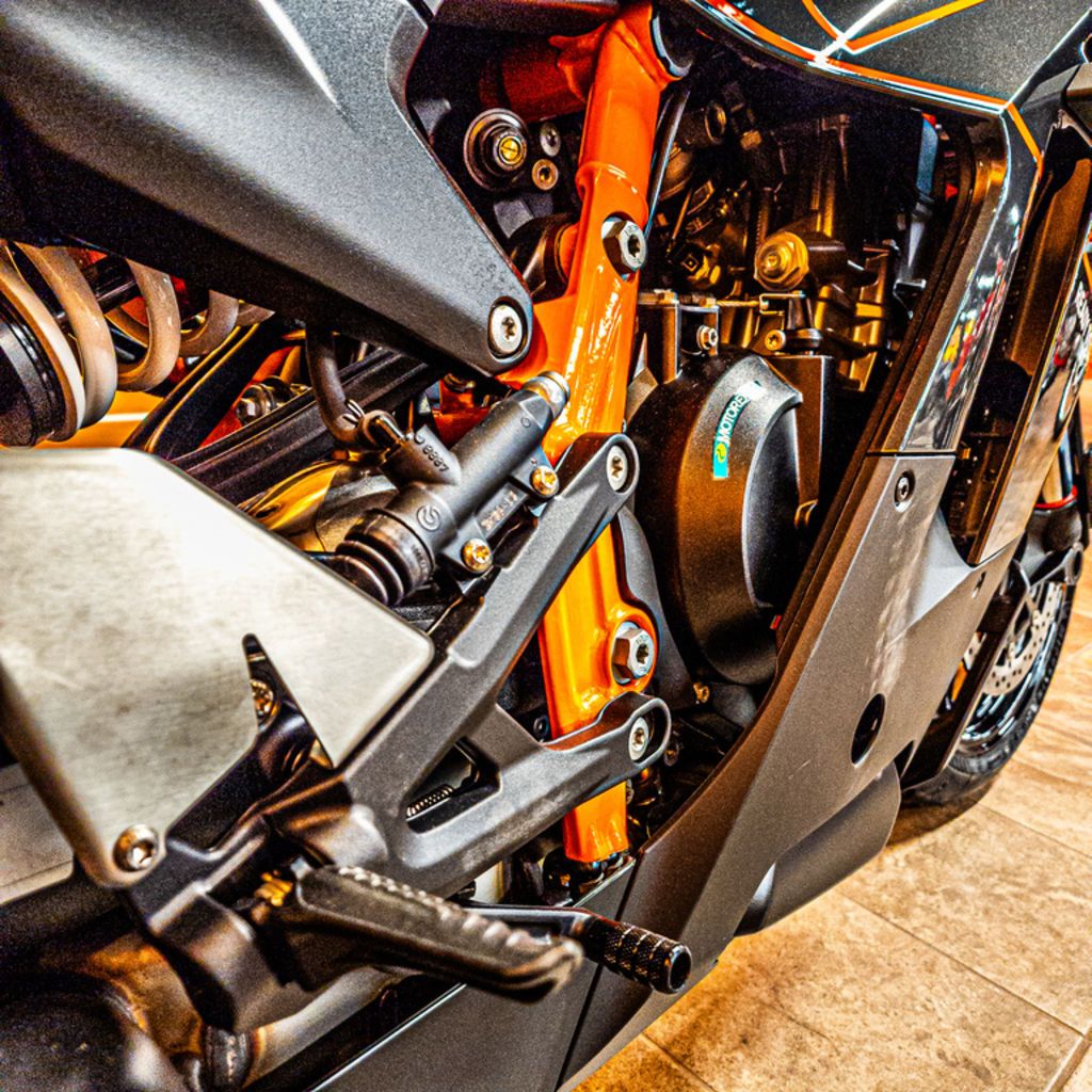 Be what you want it to be, be what you want to be. A pure-bred Supersport motorcycle like the KTM 990 RC R is a rare piece of high-tech clay, waiting to be shaped and customized for road or race. From the fully adjustable WP APEX front suspension to the movable footpegs and to the myriad of Ride Modes and settings as well as a gallery of KTM PowerParts accessories and additions, the choice is vast when it comes to dialing in the ideal sport-focused set-up. Commitment is the final ingredient to power ahead of the pack.