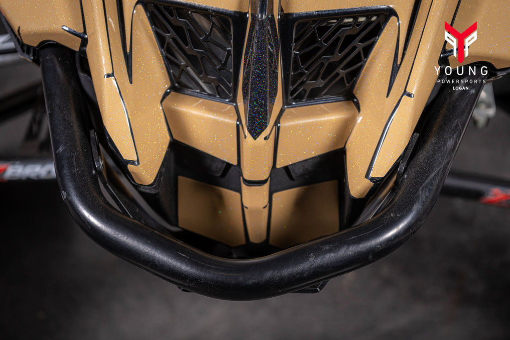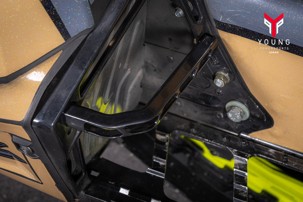The slashed and tapered tunnel features drastically improved snow clearance, minimizing drag and maximizing control on the most insane slopes. A new centralized, lightweight cooling system, bonded carbonfibre and aluminum-forged components significantly cut the real-world weight of the sled, maintaining the highest level of flickability and delivering class-leading power to weight ratio.
