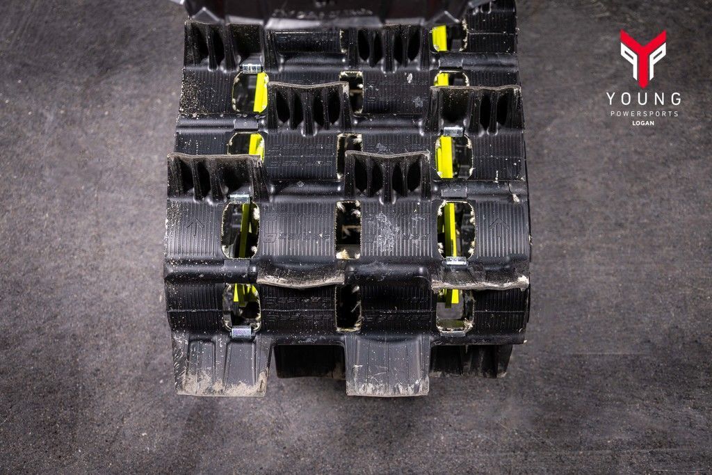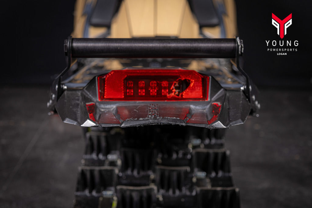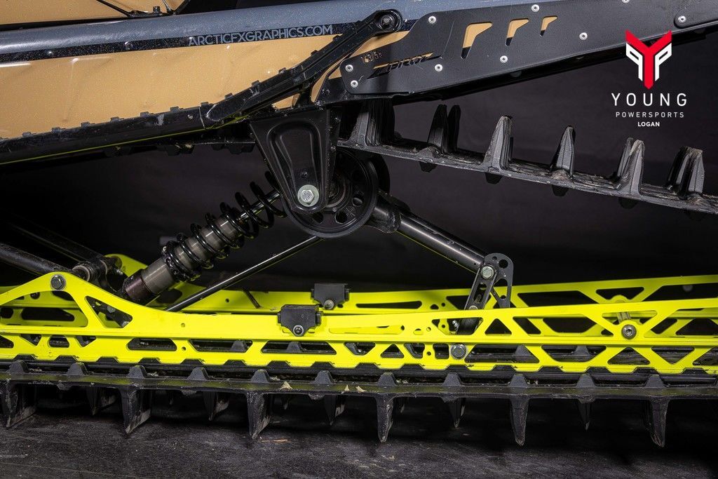 The lightweight, rigid rear suspension design features revised geometry to control pitch. This improves weight transfer, delivering better control and a more compliant ride. The rigid suspension delivers power directly to the snow. Off-trail, riders will notice improved weight transfer while maintaining the approach angle. On-trail, riders will notice a more compliant and comfortable ride. The rear suspension features a rail design that helps lift the rear skid while driving it forward.