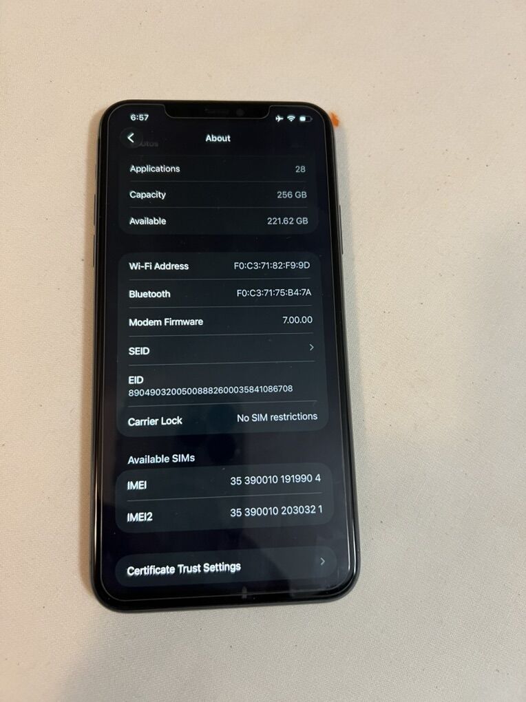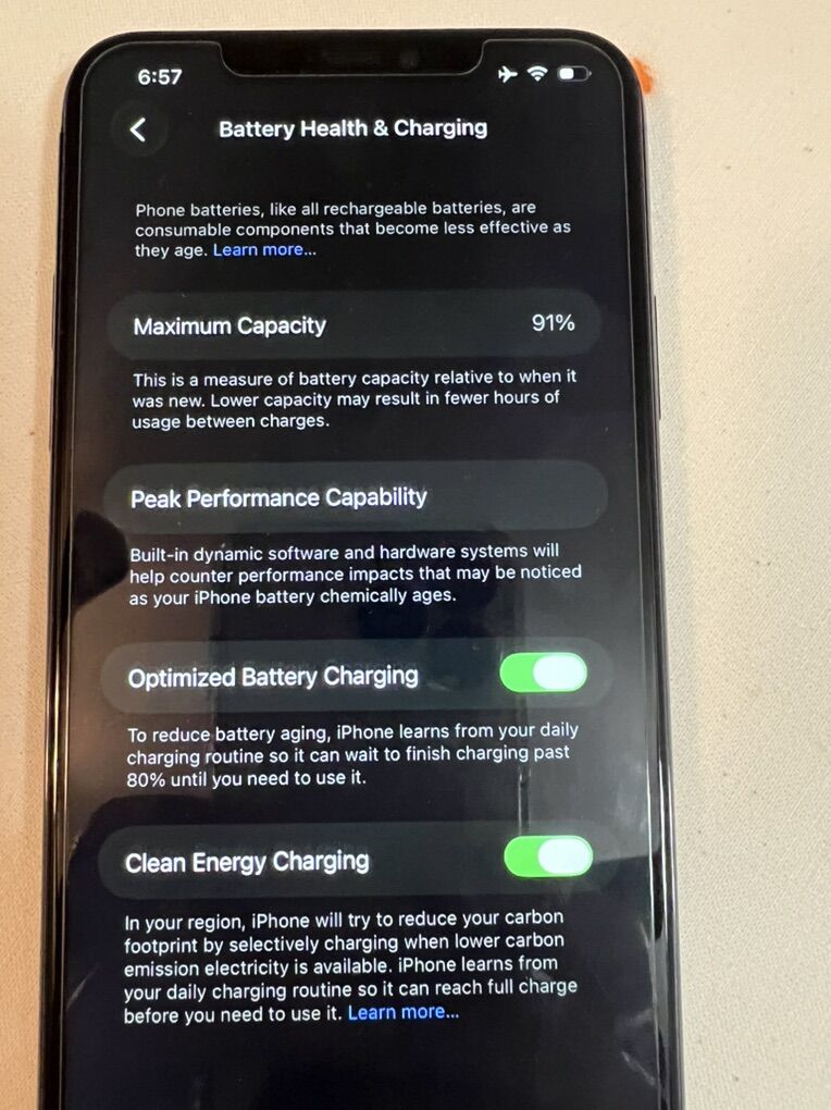 iPhone 11 Pro Max in great condition. Battery health is 91%. Phone is unlocked for any carrier. 256gb storage. Very clean. Works great. Just too big for my daughter’s hand.