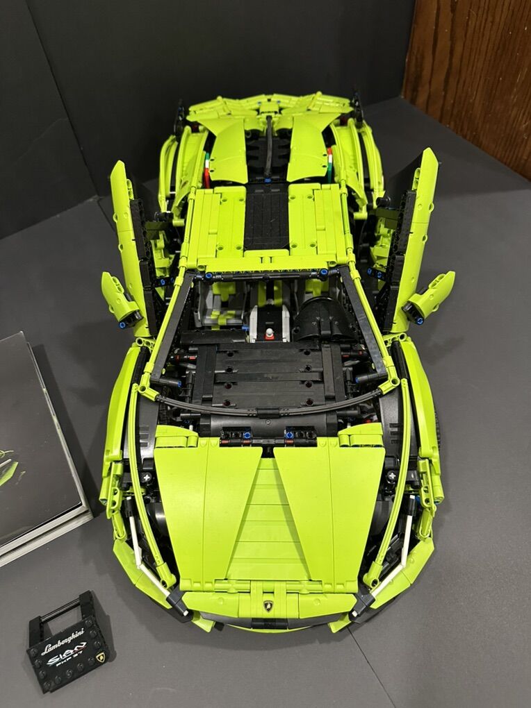 LEGO 42115 Lamborghini Sián FKP 37 is a 3,696 piece Technic set released in 2020. It features a detailed model of the Lamborghini Sián FKP 37 with an 8-speed transmission, V12 engine with moving pistons, 4-wheel drive, and scissor opening doors. Includes a luxury box and a coffee-table-quality book.