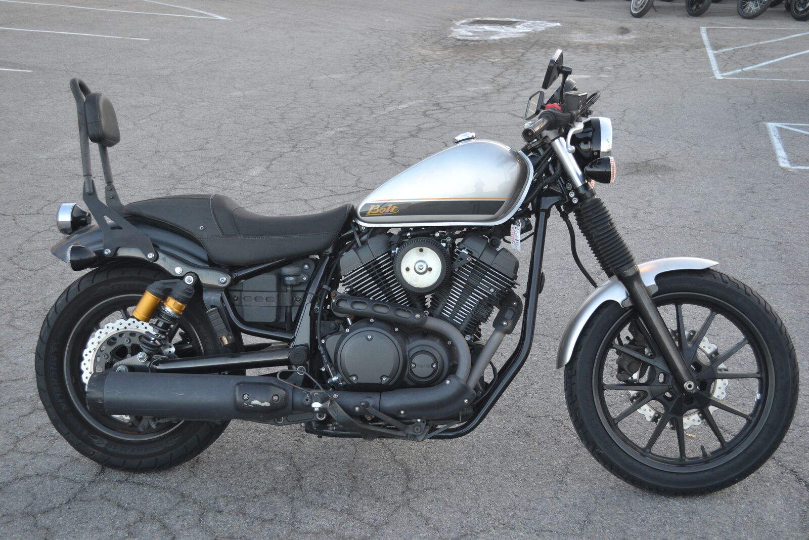 The 2015 Yamaha Bolt 950 C-Spec delivers classic V-twin torque from its 950cc air-cooled engine in a stripped-down café-inspired package. Clip-on style bars, mid-controls, and a blacked out styling give it a sportier, more aggressive stance than a traditional cruiser. This one has a new front tire, passenger backrest, and upgraded air intake. Just 16,500 miles and a clean title! Ideal for riders who want a minimalist V-twin with urban attitude and backroad appeal.