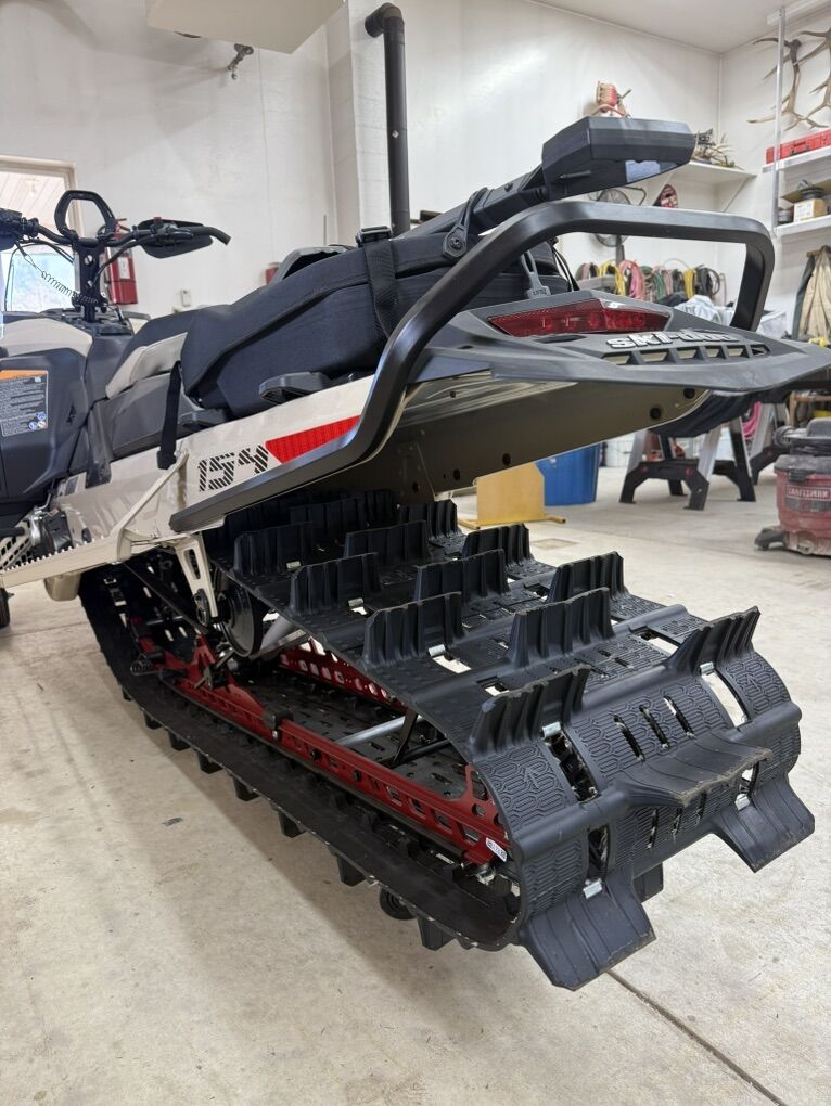 It has a 154” track 2 1/2” paddles Only 325.8 kilometers 6 1/2” handlebar riser Comes with avalanche shovel and spare belt