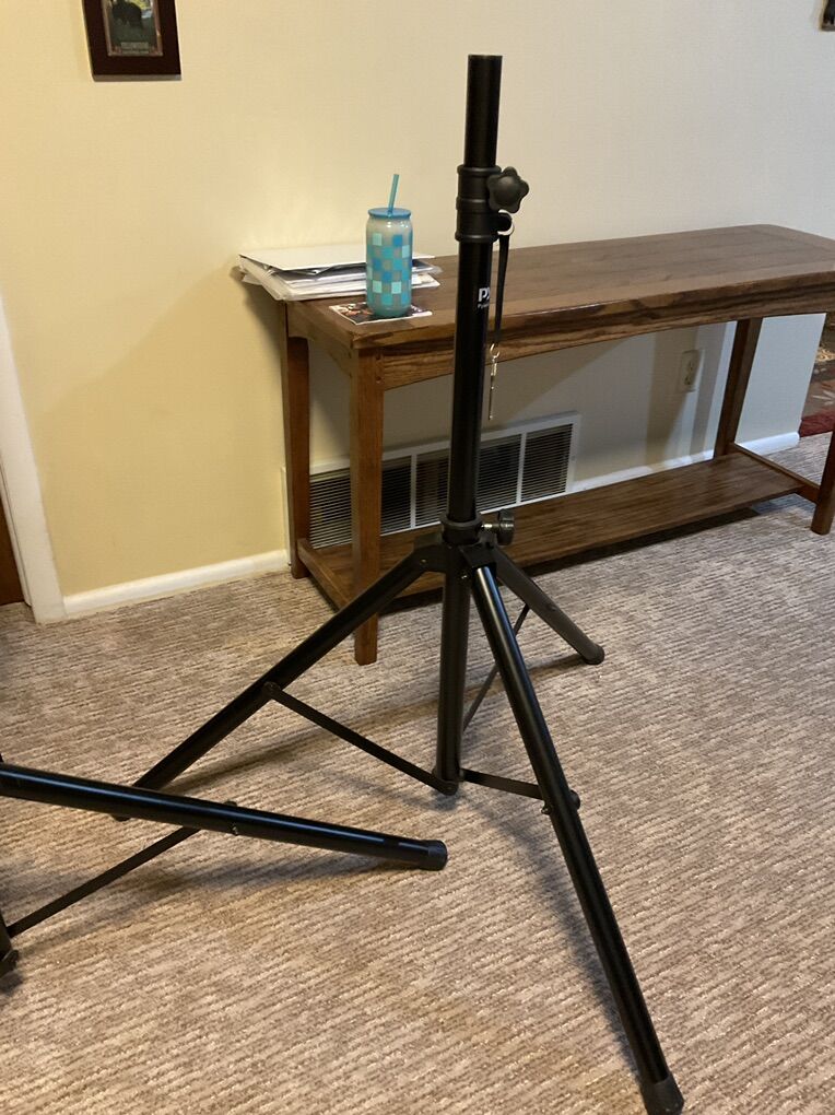 TRIPOD SPEAKER STANDS Alloy Steel 47.24”L x 40.55” W x79.53” H Black 8.49 lbs Tripod speaker stand for easy speaker setup; ideal for use on stage, in a studio, or at home 99.2-pound maximum weight capacity; adjustable height (4.1 to 6.6 feet); sturdy, expandable, long tripod legs provide stability in any environment Safety pin ensures secure speaker placement; black finish for easy coordinating with other equipment