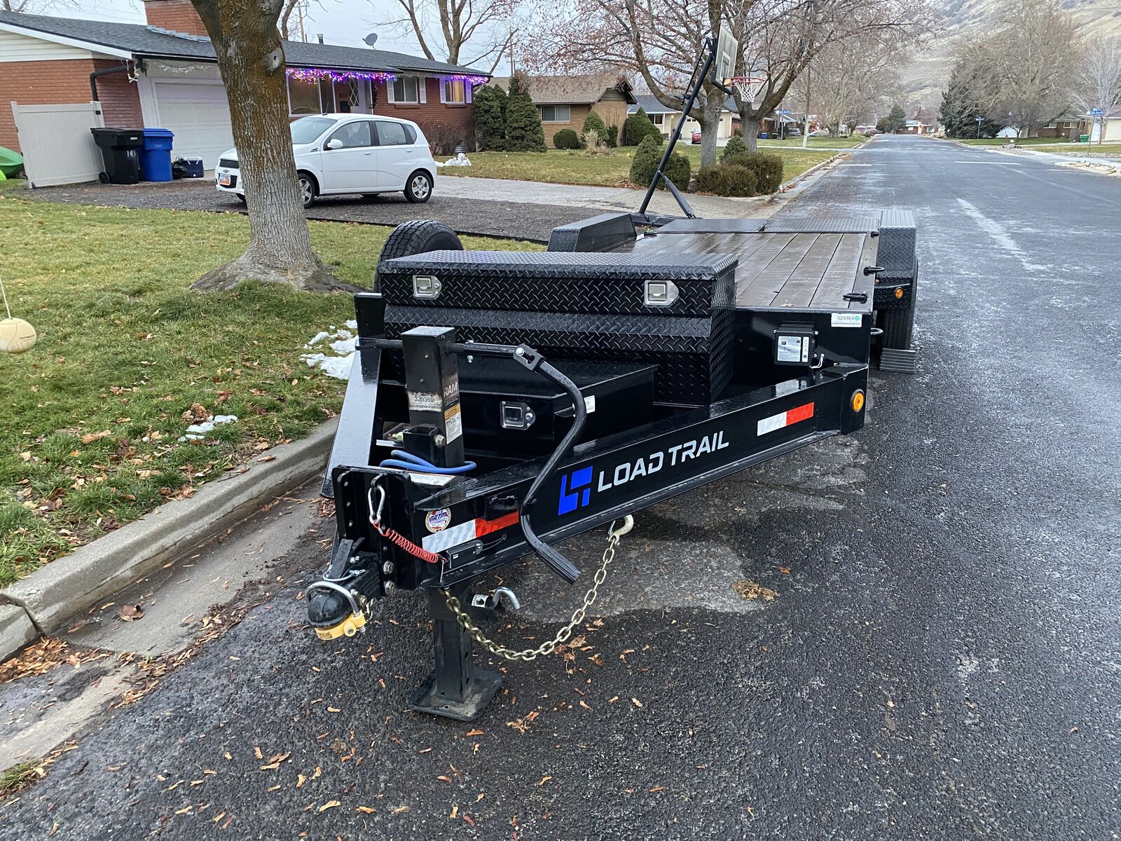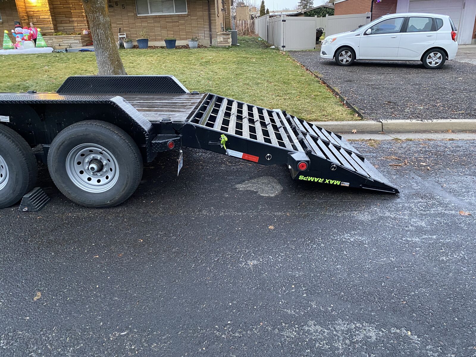 Venmo2025 Load Trail 7x20 equipment hauler. 14k weight rating. In near perfect condition. It has been used to haul a skid steer, atvs as well as building materials. Comes with matching spare tire, small storage box as well as a large toolbox mounting in the front of the trailer that both lock. It is equipped with max ramps that make loading easier and safer than traditional ramps. They also fold down flat to provide a flat surface over the dovetail in the rear. Heavy duty jack with spring loaded drop leg. Wonderful trailer. We are selling to downsize our amount of trailers to store and maintain.