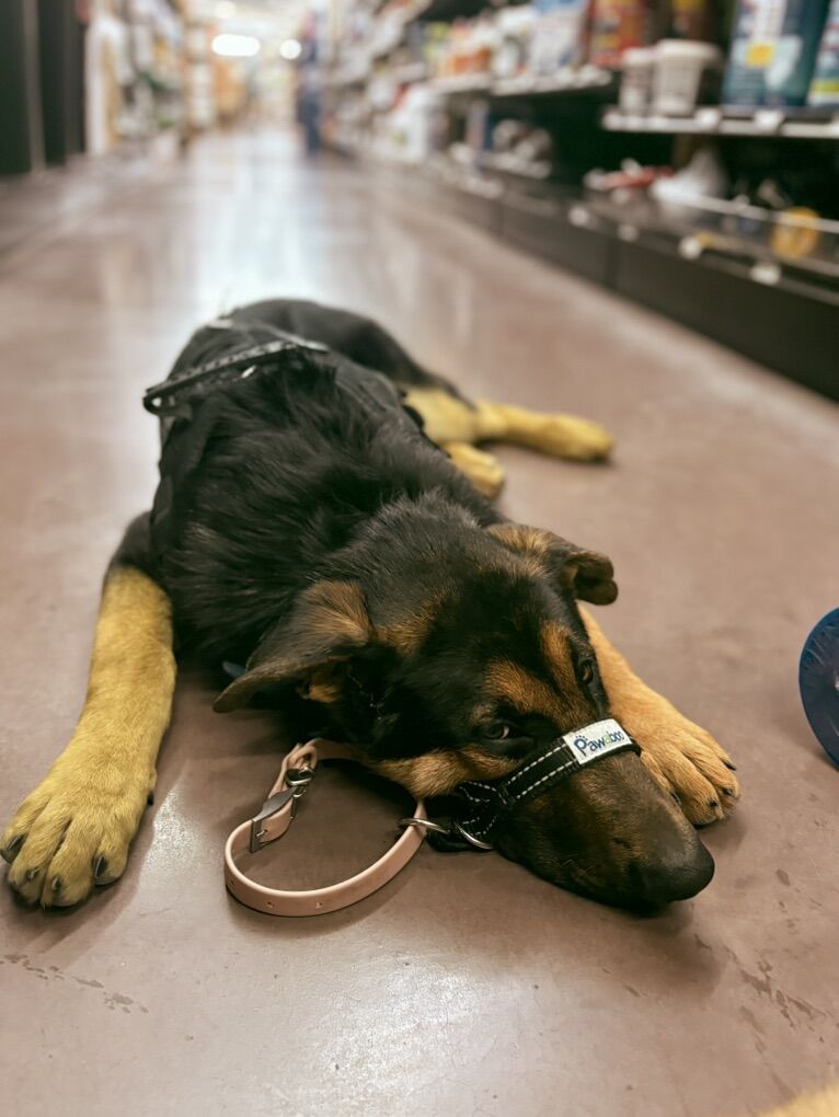 He is street-ready with comprehensive public access training. He handles new environments with focus and neutrality. Very calm and collected in public with great work-play switch.