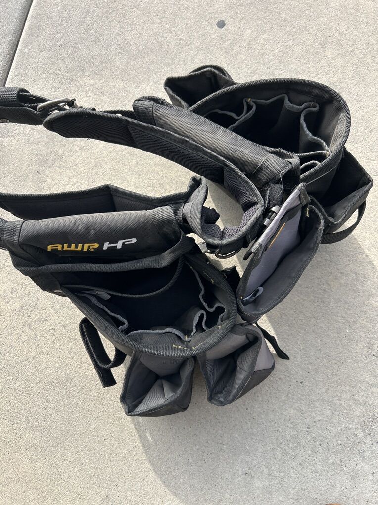 This is a AWP large, heavy duty tool belt, industrial grade, it’s never been used. It has large storage compartments, it can be adjusted and paired back to be heavy or medium or light.