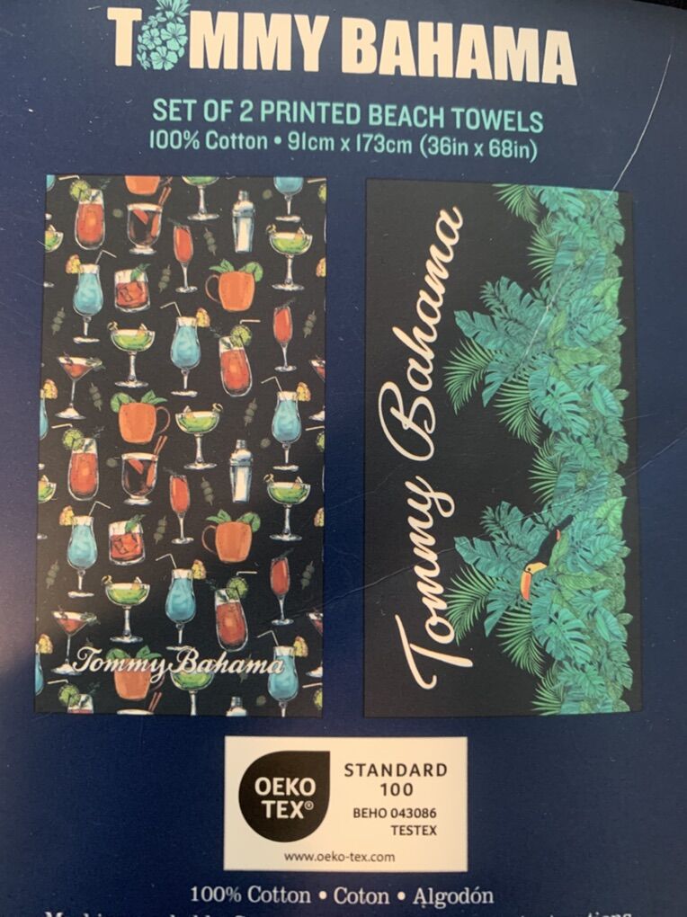 ZelleNEW Tommy Bahama SET 2 printed beach towels 36”x68” Mixed Drinks Leafs Plants