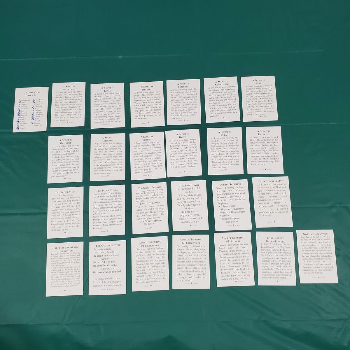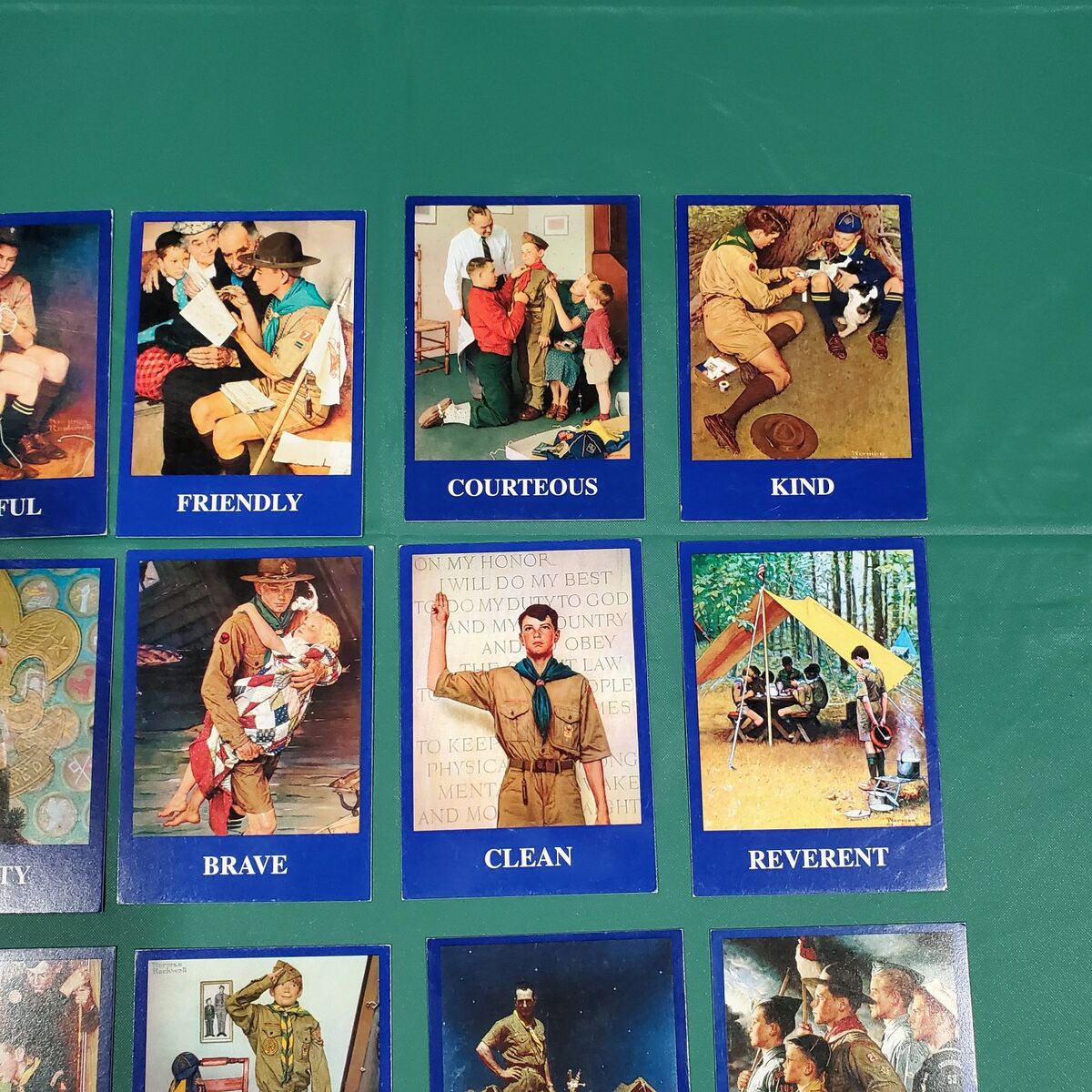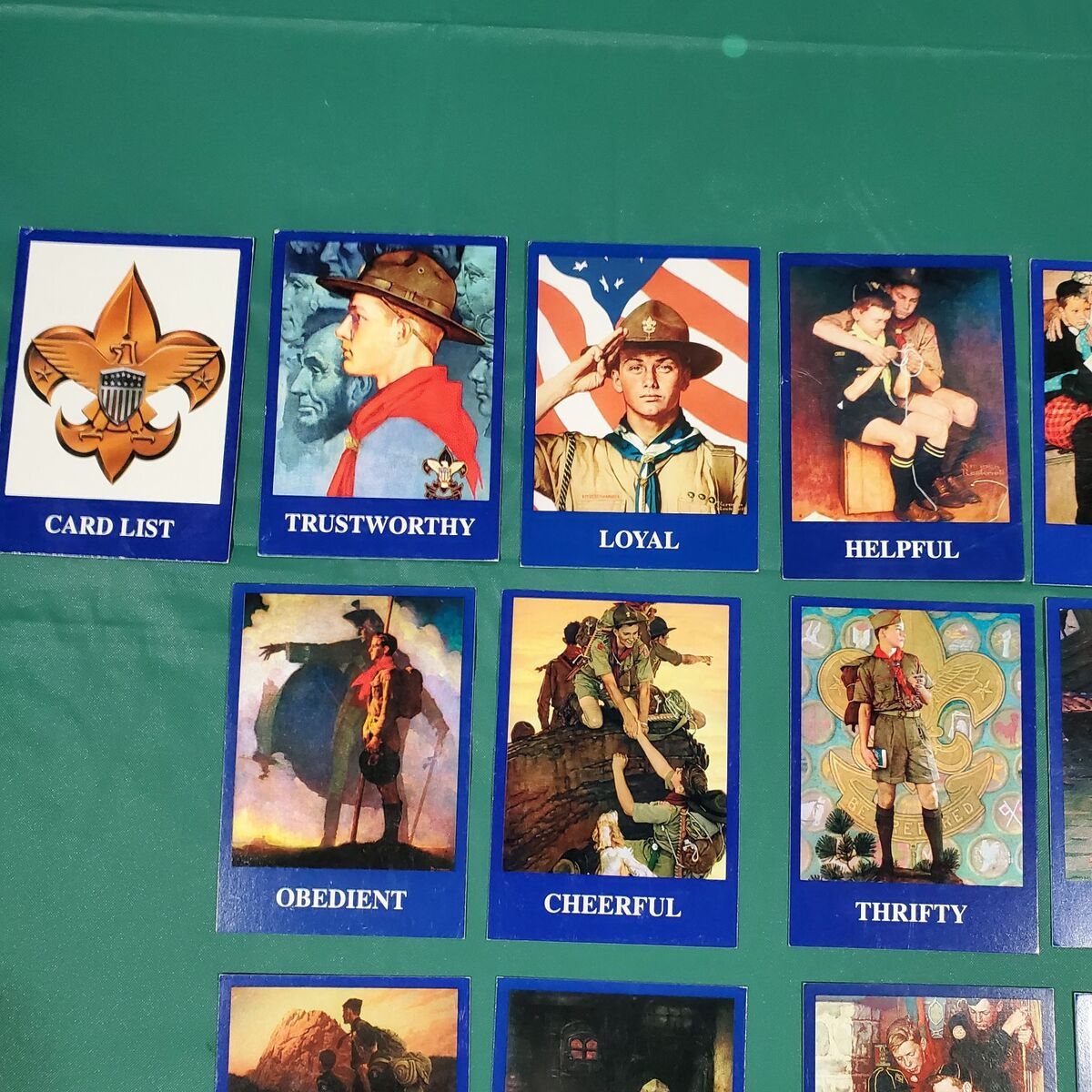 VenmoIn June 2000 The Great Salt Lake Council of The Boy Scouts of America held the Scout Expo 2000 at the Deseret Peak Sports Complex in Tooele Utah. The theme was "Scouting the new Millennium". Every boy was given 25 of the same Norman Rockwell cards, a set of instructions and a card list. The goal was to trade and obtain the 25 different cards. A great set for Scouting or Norman Rockwell collectors. These cards are normal trading card size; 3 1/2 x 2 1/2 inches. Cards come from a clean, smoke free environment. Fair condition.