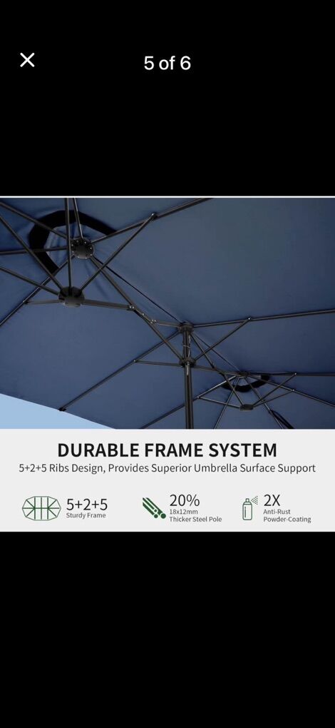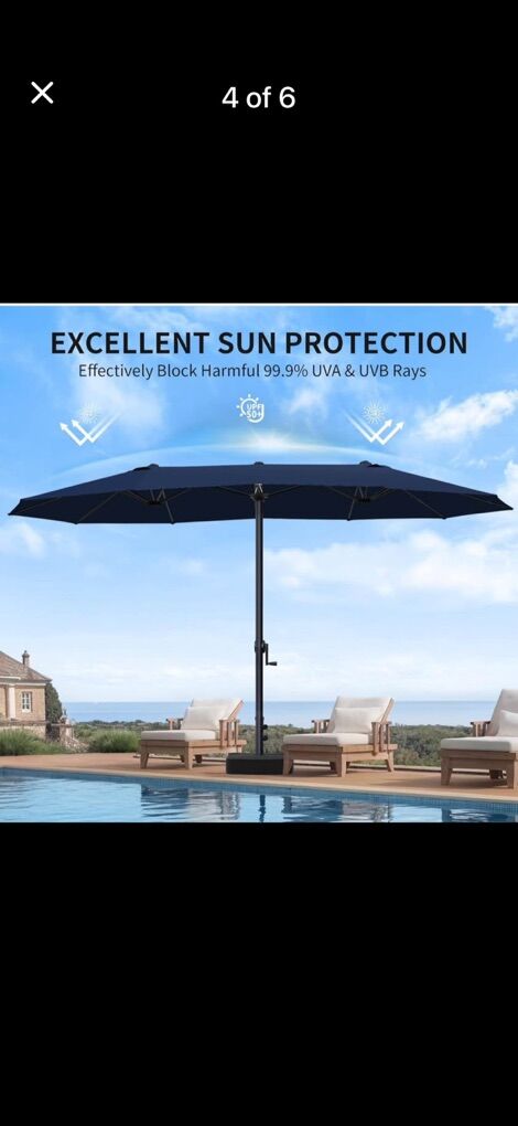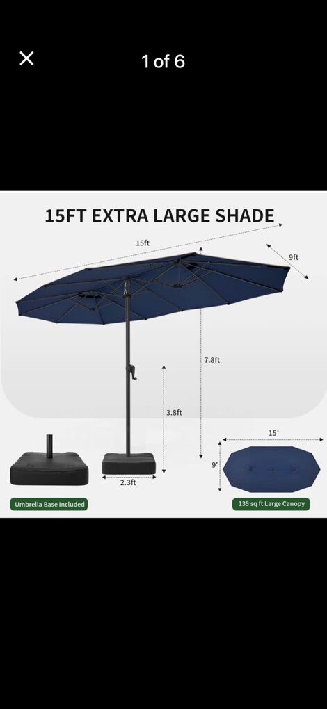 VenmoBRAND NEW IN BOX! Color doesn’t match pictures! COLOR IS BLACK! Patio Table Umbrella, 15ft Large Deck Umbrella with Base Included, Outdoor Double-Sided Rectangle Market Umbrella with Aluminium Crank, 12 Sturdy Ribs, for Deck Porch Garden.