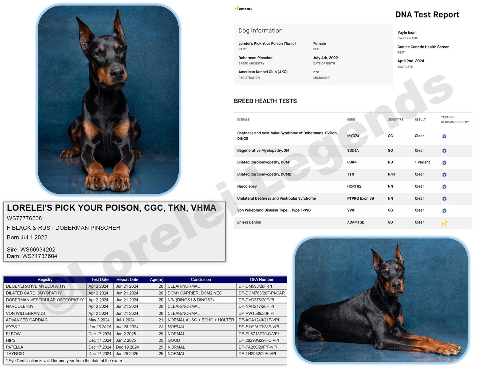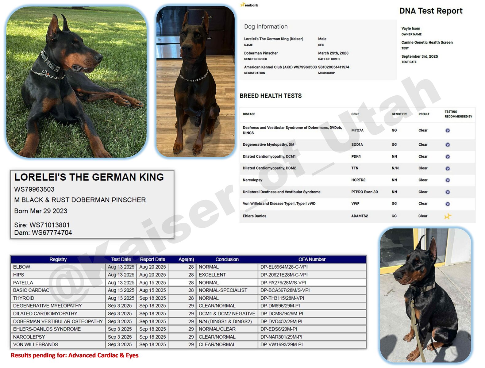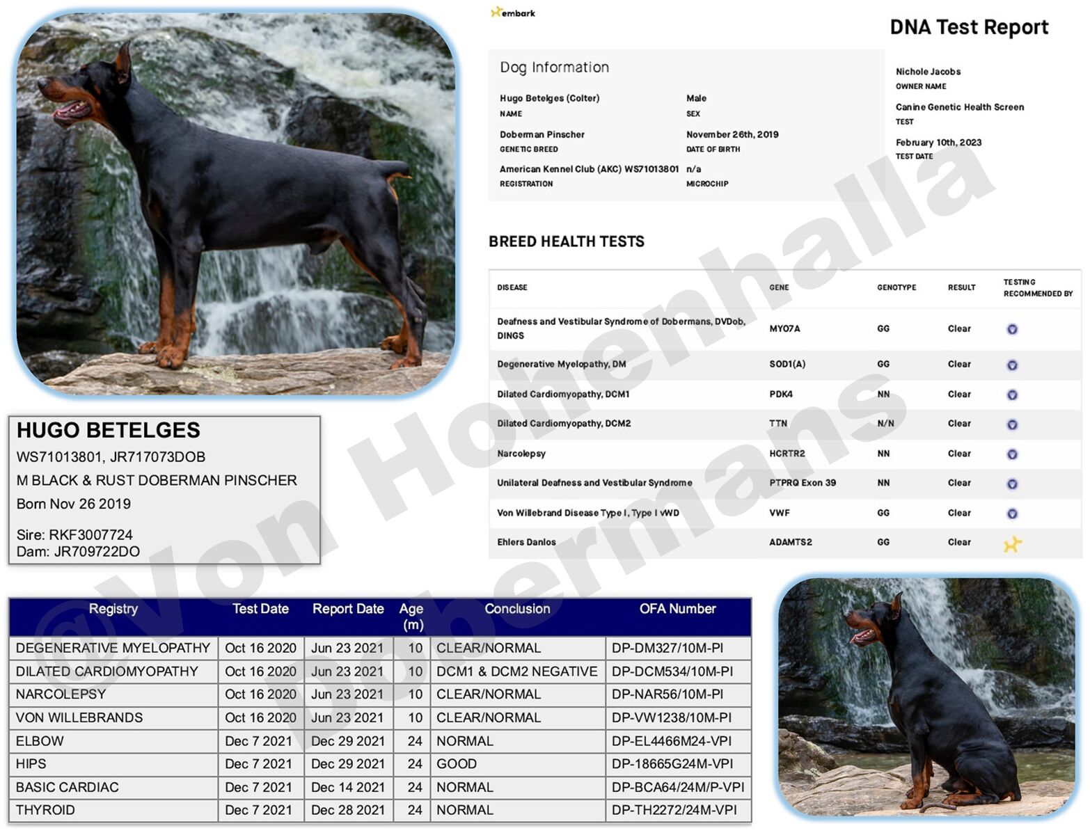 Parents are OFA health tested and from fully European imported dogs. The pedigree for these puppies includes many champions AND international champions.