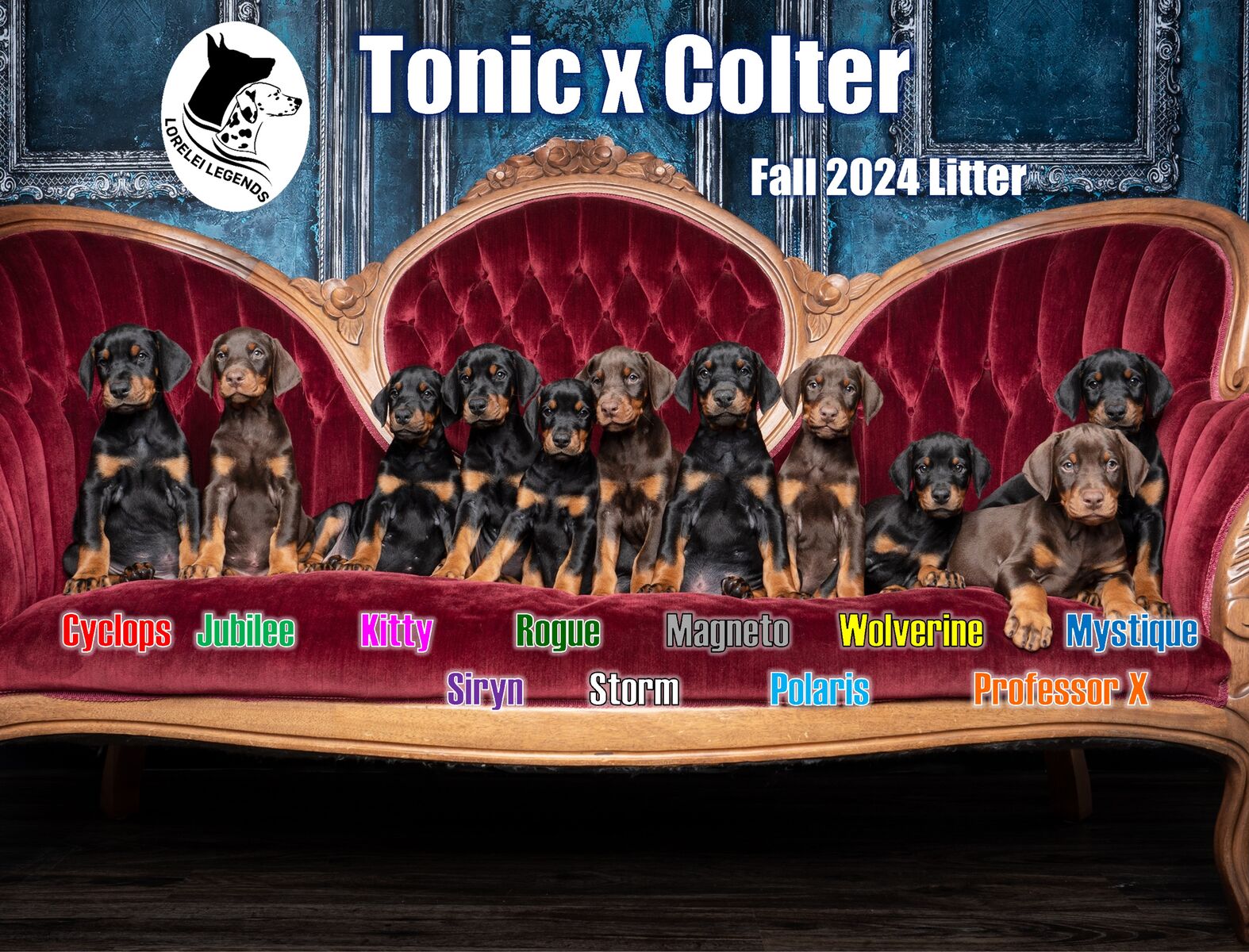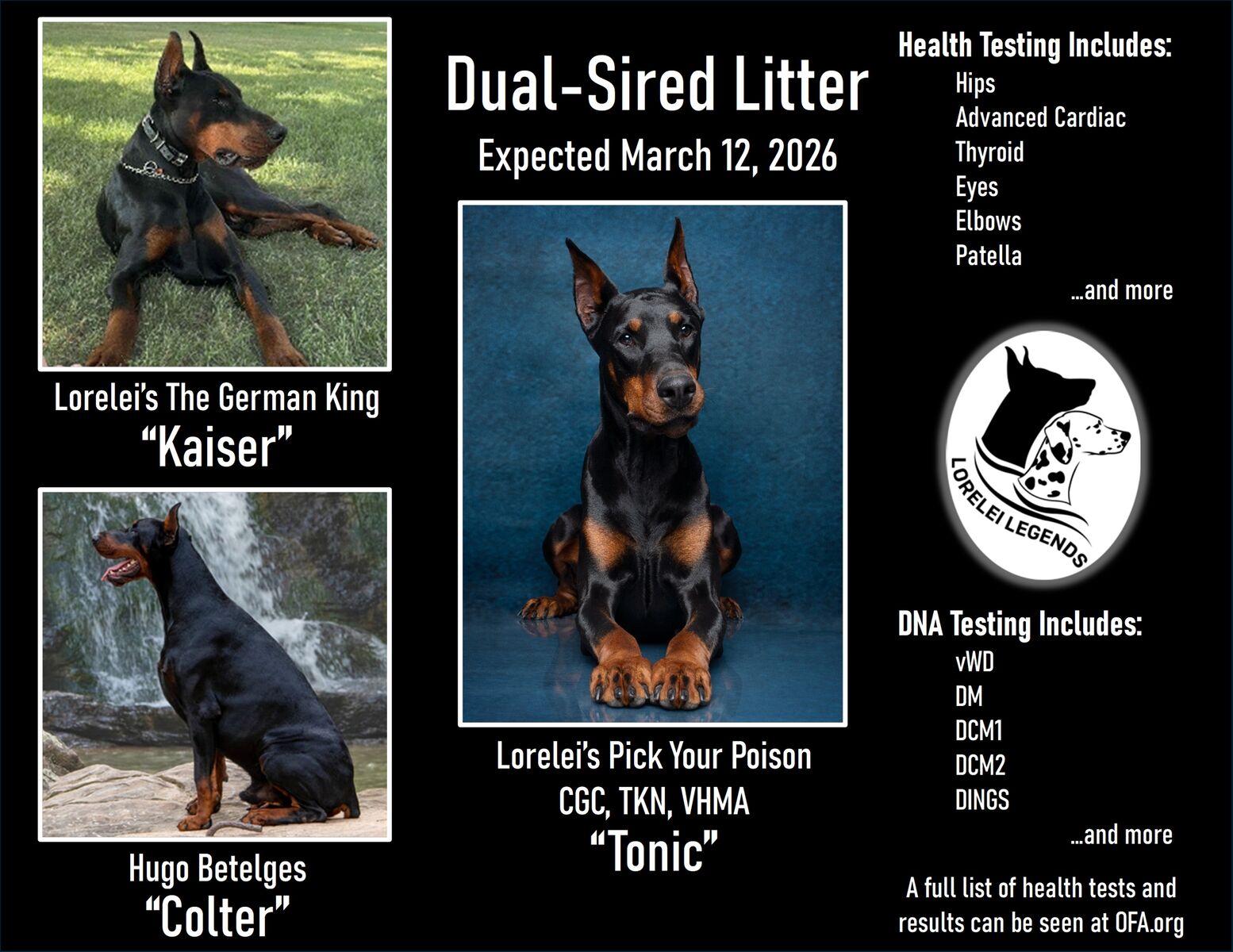Our next litter will be due in March 2026. Going home in May. Puppies pictured above are from Tonic & Colter's previous litter.