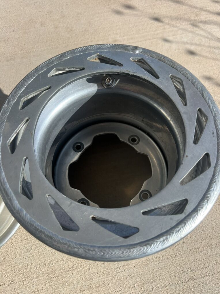 VenmoThese are great for the desert or rough terrain. These guard the valve stem from being damaged. I bought a set of tires for the rubber only and these wheels didn’t fit my machine. 4x144 bolt pattern 9x8.5. Make me an offer.