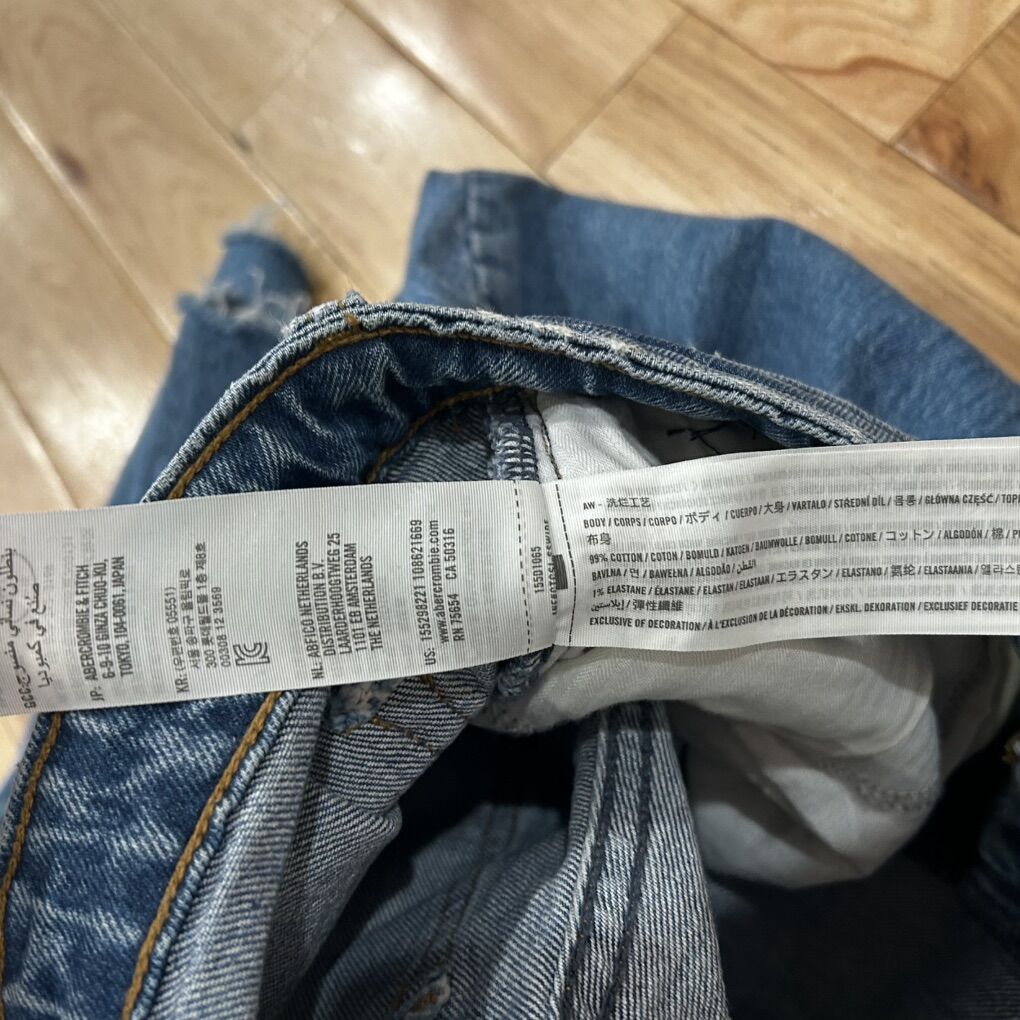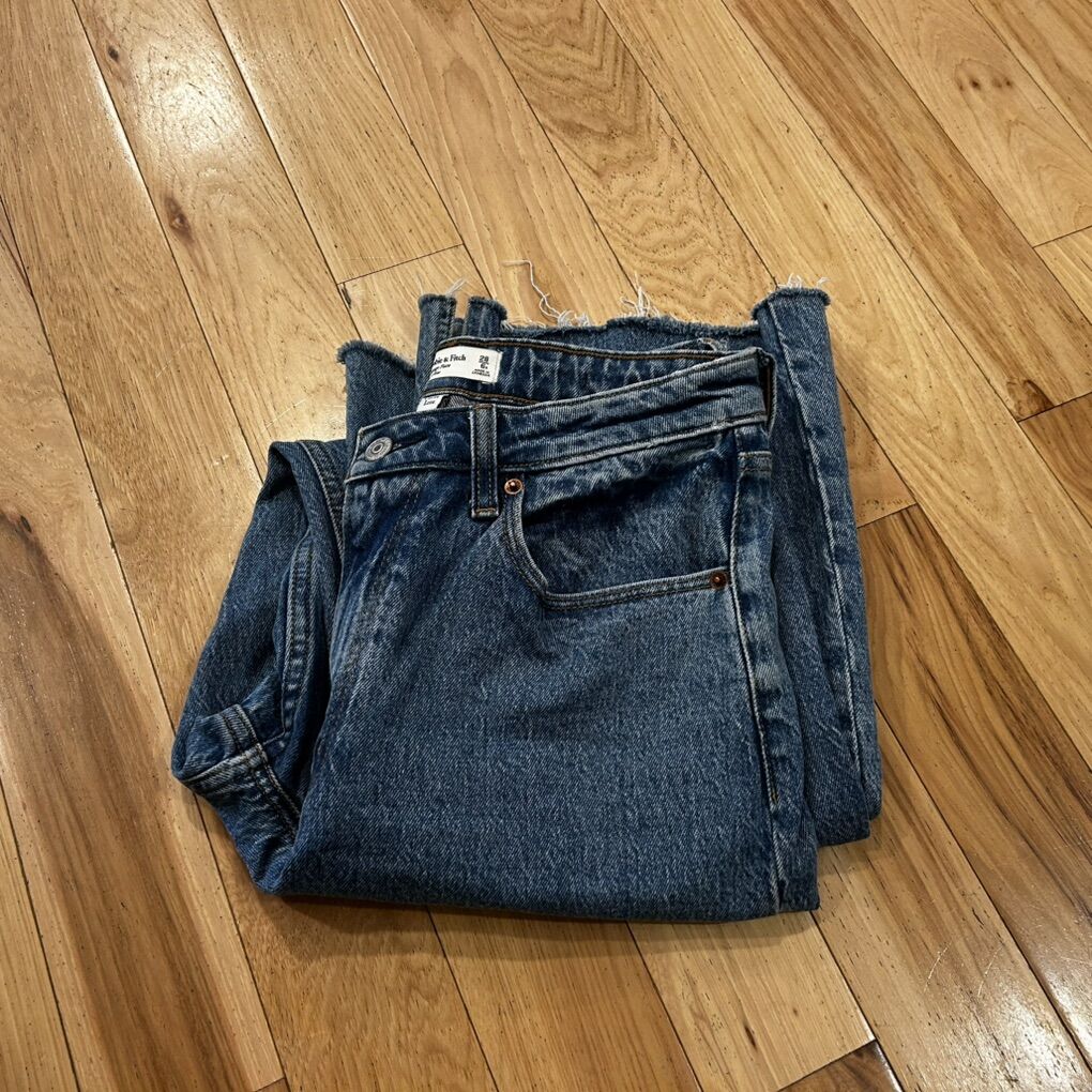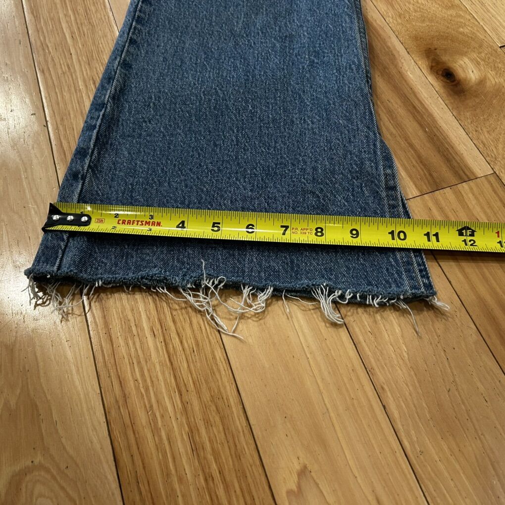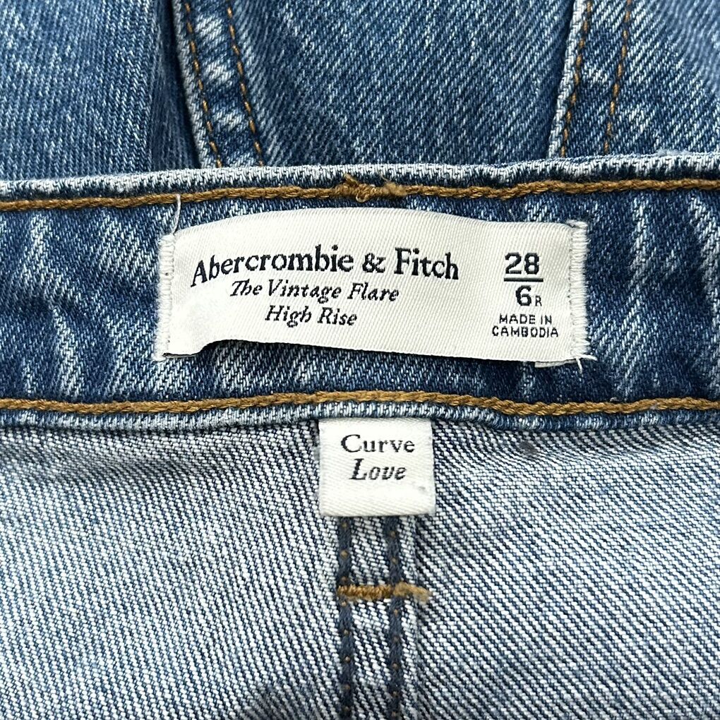 Abercrombie and Fitch The Vintage Flare High Rise Curve Love Jeans - Women’s Size 28 / 6 R (regular) - with raw hems and hem slits - button and zipper fly closure - great condition - pre-owned.