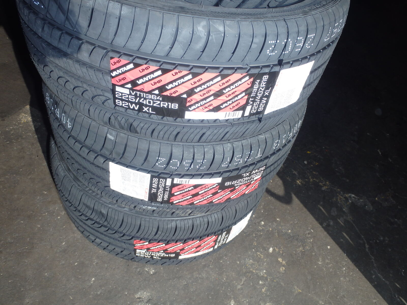J&J TIRES & WHEELS SET OF BRAND NEW TIRES 225/40R18 VANTAGE UHP 40K MILES WARRANTY, FOR ONLY $320 THESE IS A GREAT TIRES FOR ANY WEATHER CONDITIONS, WE WILL INSTALL THEM FOR AN ADDITIONAL $20.00 PER TIRE INSTALLATION INCLUDES MOUNTING,BALANCING,VALVE STEAM AND TIRES DISPOSAL FEE,CALL FOR ANY QUESTIONS AT JOSE OR ROBERTO 801-878-4556 801-410-4460 OR VISIT US,WE'RE OPEN MONDAY TO SATURDAY FROM 9:00 AM TO 6:00 PM..WE HAVE A LOT'S A MORE AN NEW TIRES AND WHEELS CALL US IF YOU ARE LOOKING FOR A DIFFERENT SIZE....
