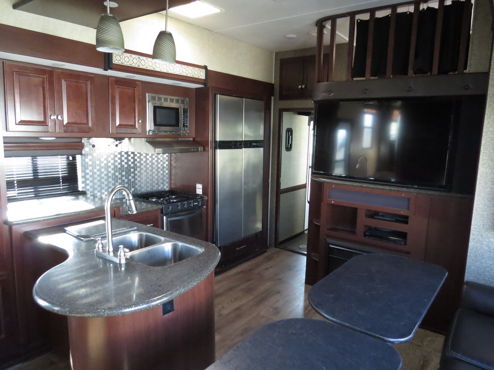 12' Separate Garage!, 3 slides, Generator 5500 Watt, Fuel station, Kitchen & Fridge SLIDE! Big Couch Slide, Lots of storage, (2) Double Rear Electric Queen Beds (Bottom bed makes into Booth Dinette), Front Bed Slide, Electric patio awning, Fiberglass exterior, (2) A/C units and Heat. Location: 50 S Frontage Rd, Springville Dealer#832B Quality RV -Financing Available-