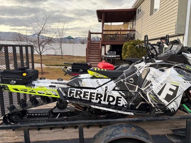2018 Skidoo Freeride 850 165 3” lugs with SHOT, 2279 miles. Freeride wrap, aftermarket front and rear bumpers, low seat, smaller 4-inch handle bar extension, aftermarket can and food warmer, Fox IQS (Intelligent Quick Switch) shocks front and rears, $4k retail. Bikeman Steep and Deep clutch kit, fuel module, y-pipe and pipe. $1400k. Accessory plug and cell phone holder. Tmotion adjustable limiter strap. Great condition. Maintenance done and registered till 12/26.
