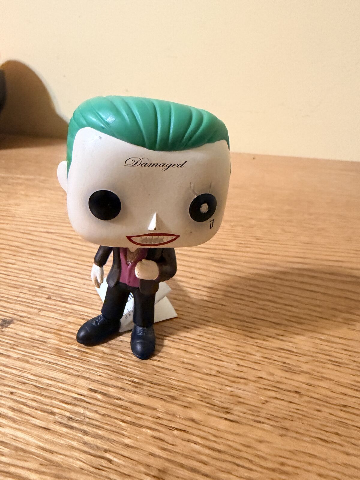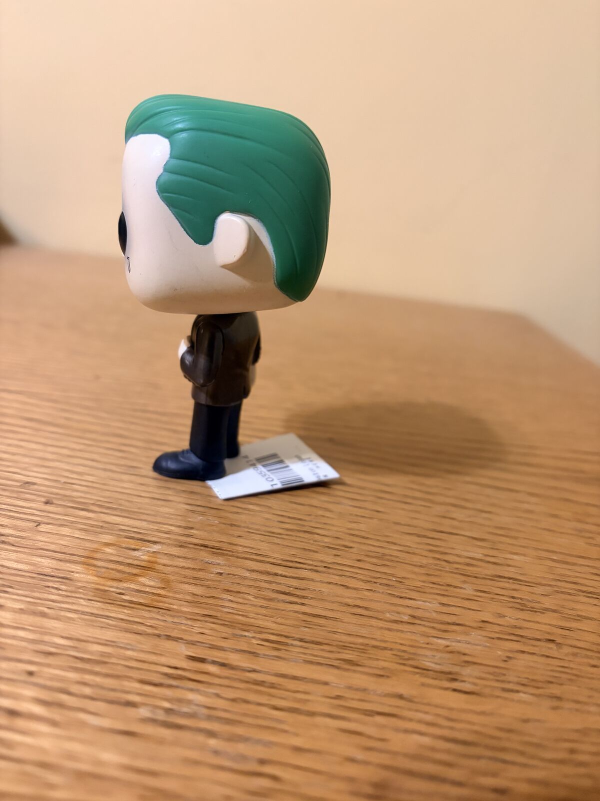 The Joker figure does not stand fully on its own and needs a very small piece of paper under the right foot to balance.