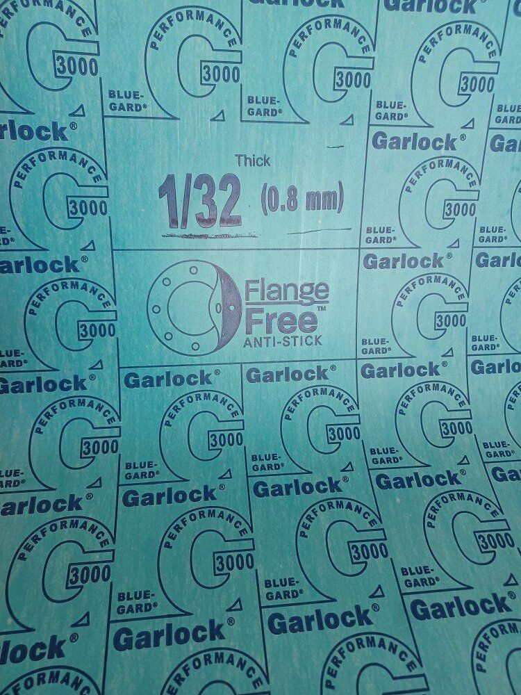 Garlock Performance 3000 Blue-Gard 1/32 gasket paper. 5'x10' sheet is $100. 5'x5' sheet is $60. 2.5'x5' sheet is $35. Local pick up only. FCFS Cash accepted