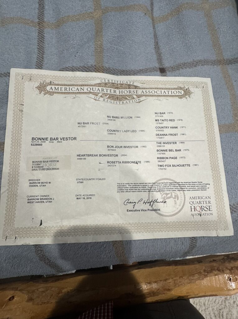 VenmoShe is 17 years old she’s been roped off hunting I have had 5 babies from her just have to many horses and I am not wanting to breed her anymore. Any questions give me a call. I will be willing to take trades let’s talk thanks