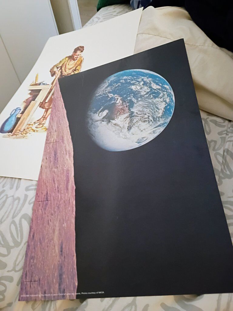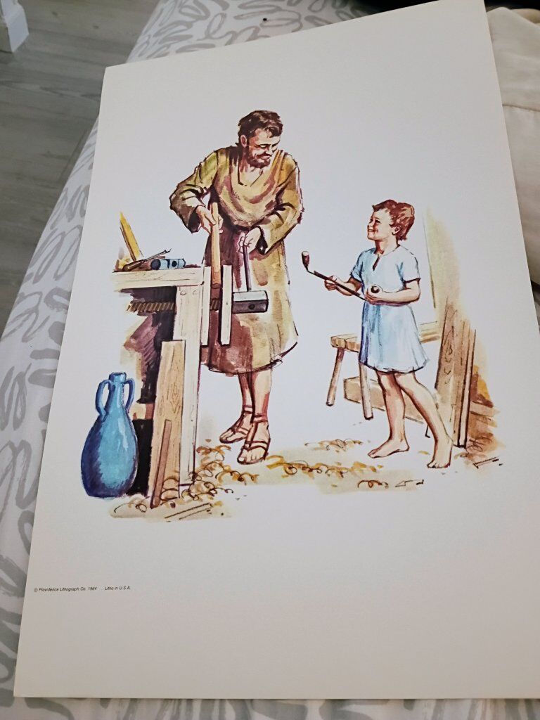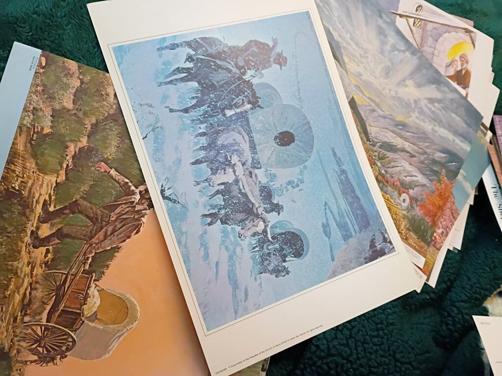many posters story of Jesus posters writing on the backs some show Church of Jesus Christ of latter-day saints. Plus there's many envelopes what have different little stories and cutouts.