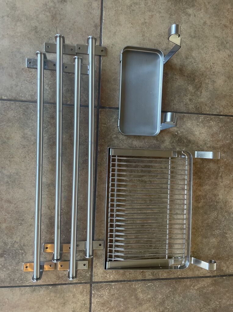 2- 47.25” wall shelf 1- 31.5” wall shelf 4- 23.25” rails 1- 9.75” x 5” accessory shelf 1- 13.75” accessory dish rack 2- 23.6” x 8” solid stainless steel
