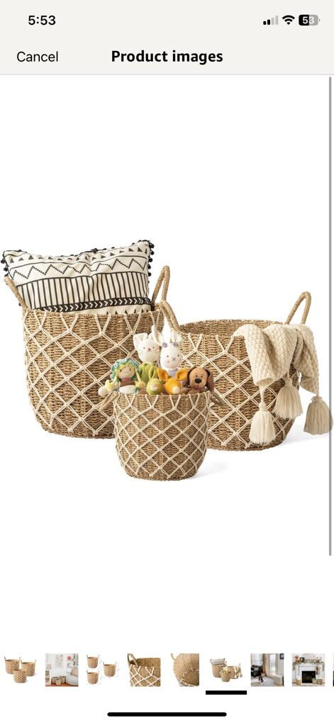 ZelleBrand NEW…Artera Natural Wicker Storage Basket - Round Boho Woven Storage Bins, Tall Seagrass Plant Basket 16” tall (not including handles) 15” wide NO SCAMMERS! Due to extremely high amount of scammers…I don’t accept payment til you arrive!