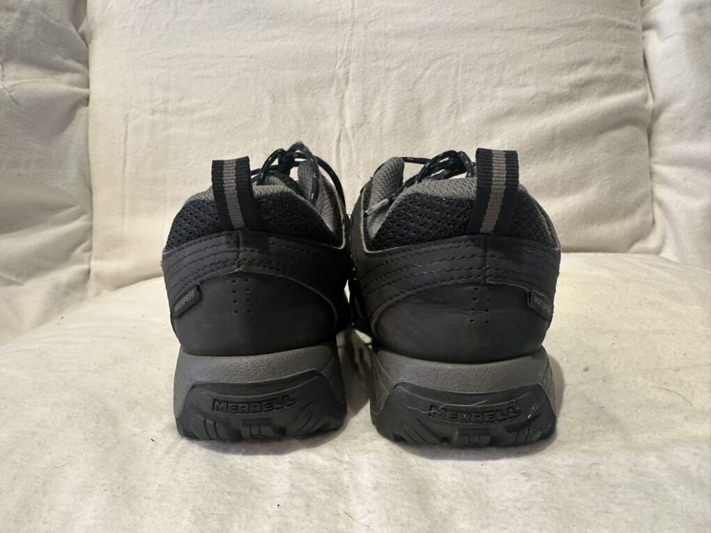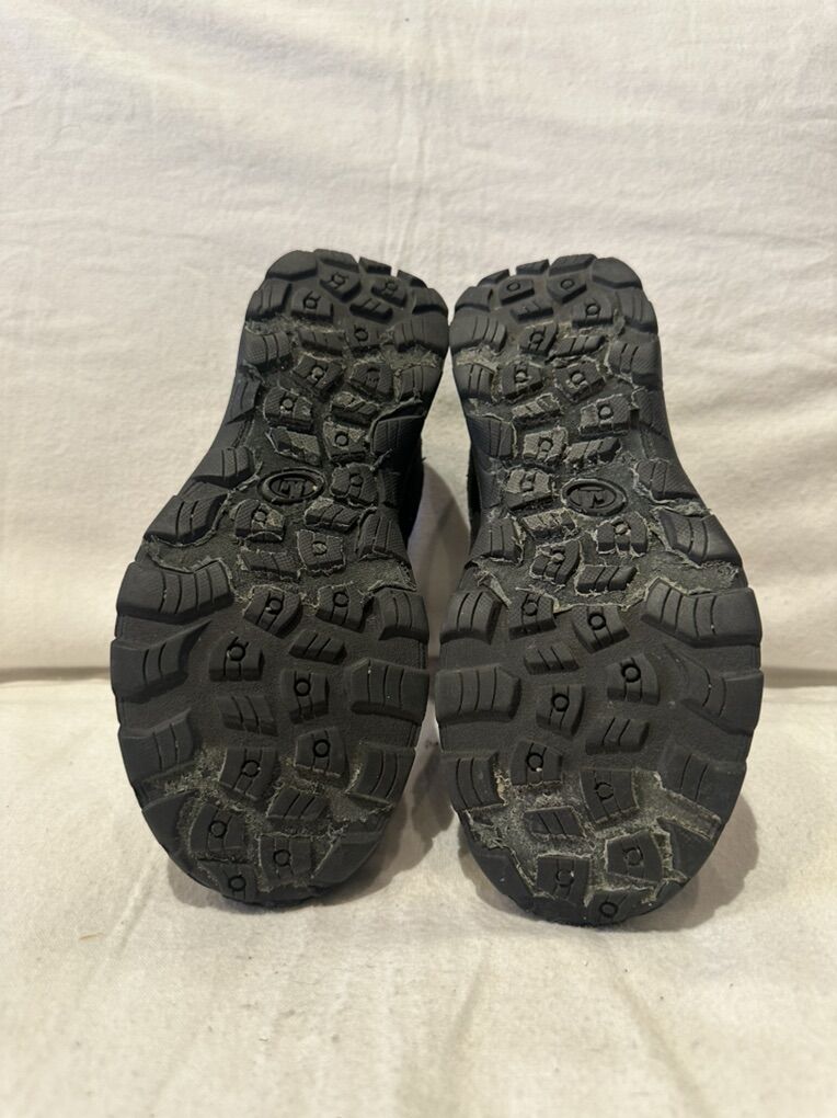 Merrell youth size 4 black with grey trim, waterproof lace up hiking shoes. These are in good condition, see photos for details. I take cash or Venmo, the cash is preferred. Text is best. 801-201-4446. Check out my other ads for additional sizes and styles.