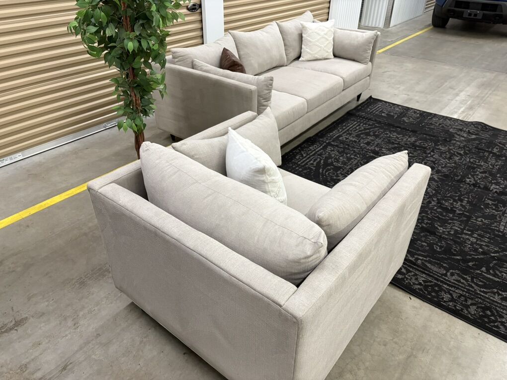 BEAUTIFUL COUCH SET IN AMAZING CONDITION‼️ No rips, damages or stains. All cushion covers (seat & back) were removed and machine washed! Super comfortable with deep seating. Sofa is large enough for 4 people!