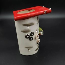 Vintage Lefton wall pocket. It stands about 5 inches tall by Lefton China. It has rhinestones on it and is very unique. There are no chips, cracks.
