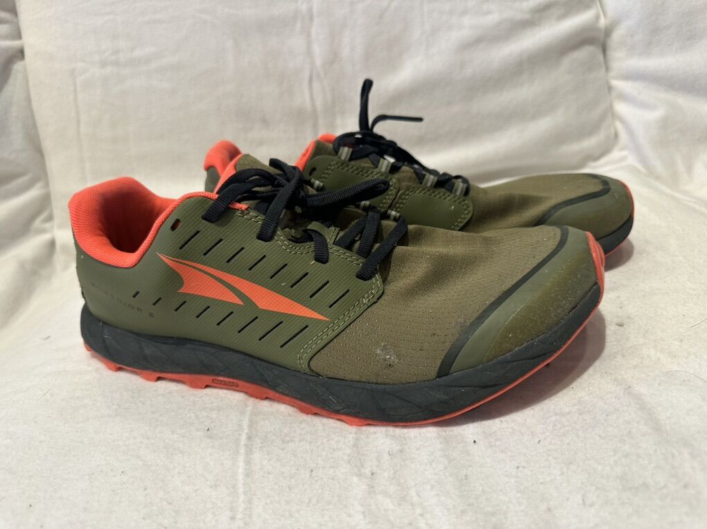 Altra superior 5 men’s size 10 olive green trail shoes. These are in good condition, see photos for details. I take cash or Venmo, but cash is preferred. Text is best. 801-201-4446. Check out my other ads for additional size sizes and styles.