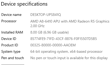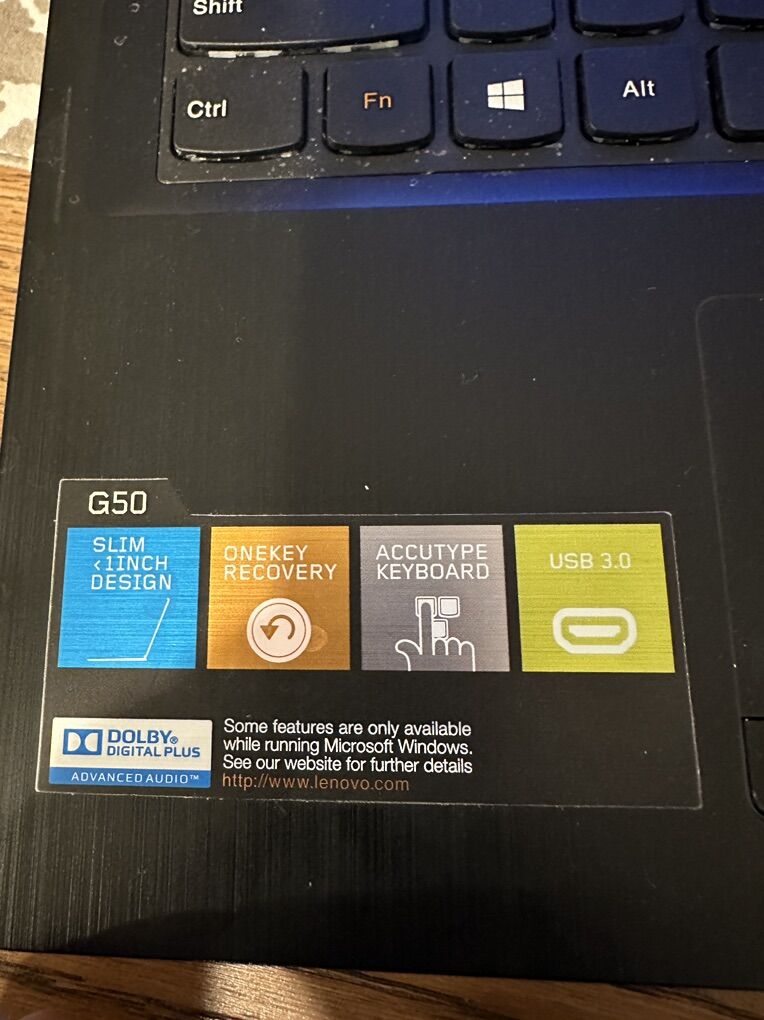 Venmo15” Lenovo G50-45 Processor: AM8-6410 (4 Cores, 4 threads) RAM: 8GB Storage HDD 500GB Windows 10 Good Shape 2 USB 2.0 Ports 1 USB 3.0 Port 1 HDMI Port Original Charger included Laptop ready to use. Battery in place but does not hold the charge, work well with its original charger included. ______ I accept Venmo and cash