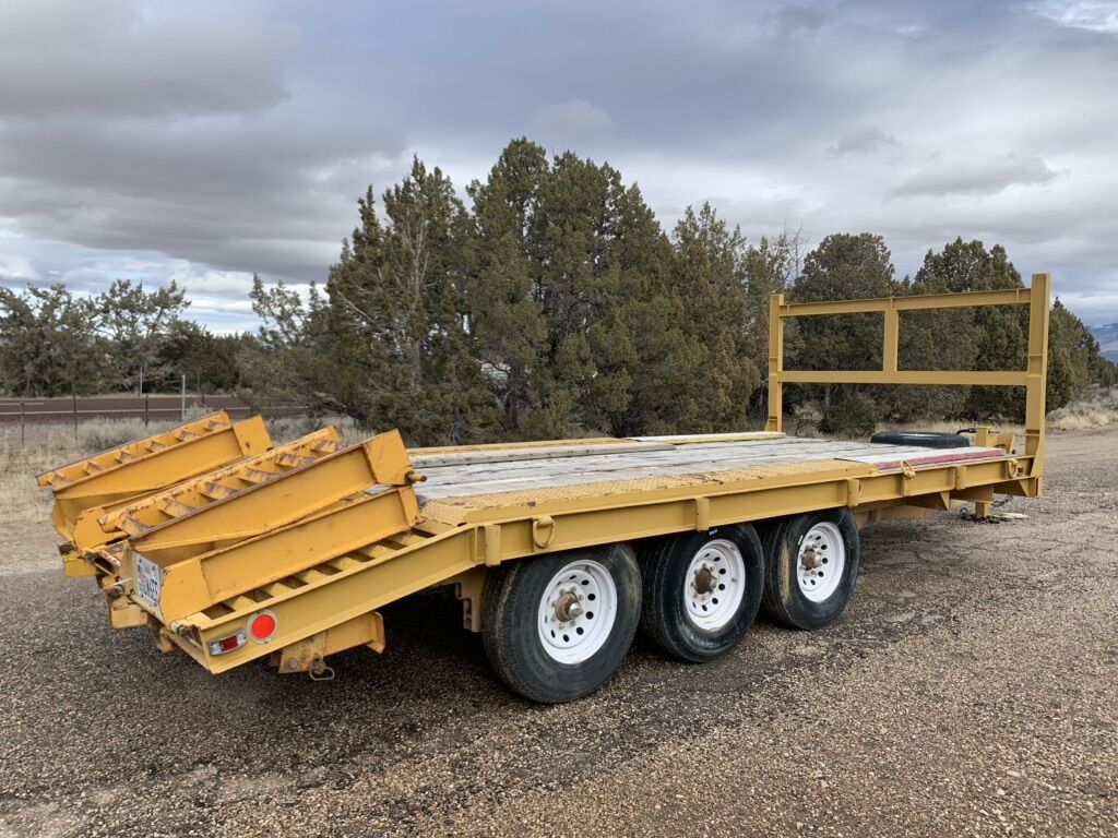 Completely redone in 2018 by an equipment shop, 21k gvw triple axle with brakes on all wheels, changeable pintle hitch equipment trailer with extra heavy duty doubled deck boards for tracks, is perfect for around a D4 size dozer, 16’ deck plus 3’ dovetail with 6’ folding ramps, asking $5,700 obo NO SCAMMERS!!