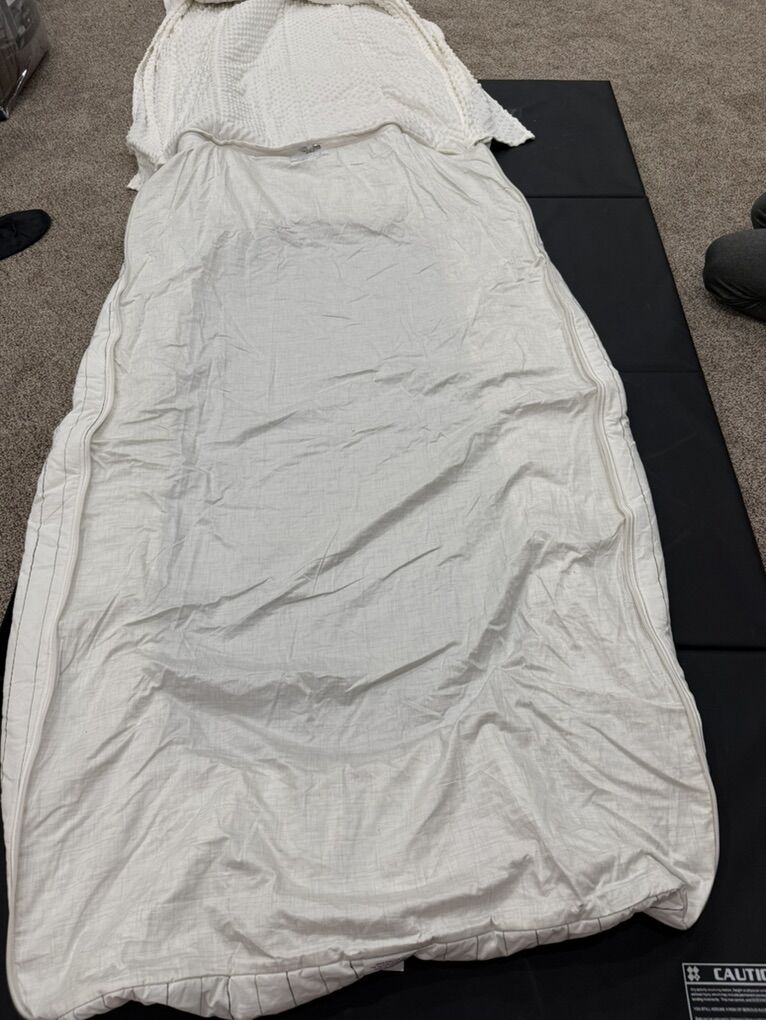 Includes a sham and a case. Possible stain on sheet and small mark on top. Haven’t tried to wash out. Item number 30JAN