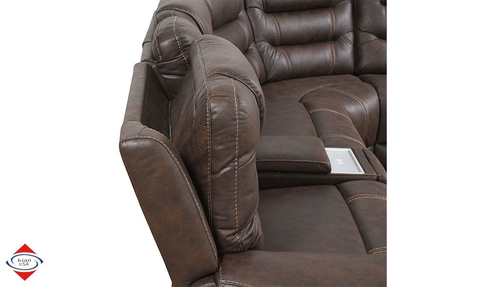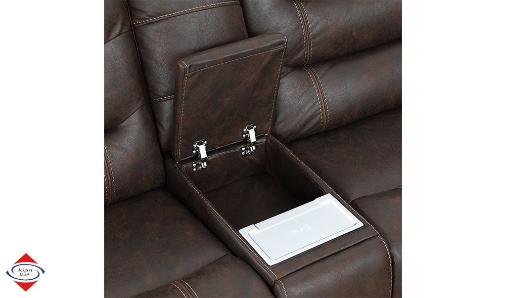 ApplePayPower Motion Sectional with 3 power seats. Stainless steel cupholder in each arm. Wireless charger on console. Cord input on each end. Measurements: Length: 9x10 Depth: 39 inches Height: 42 inches