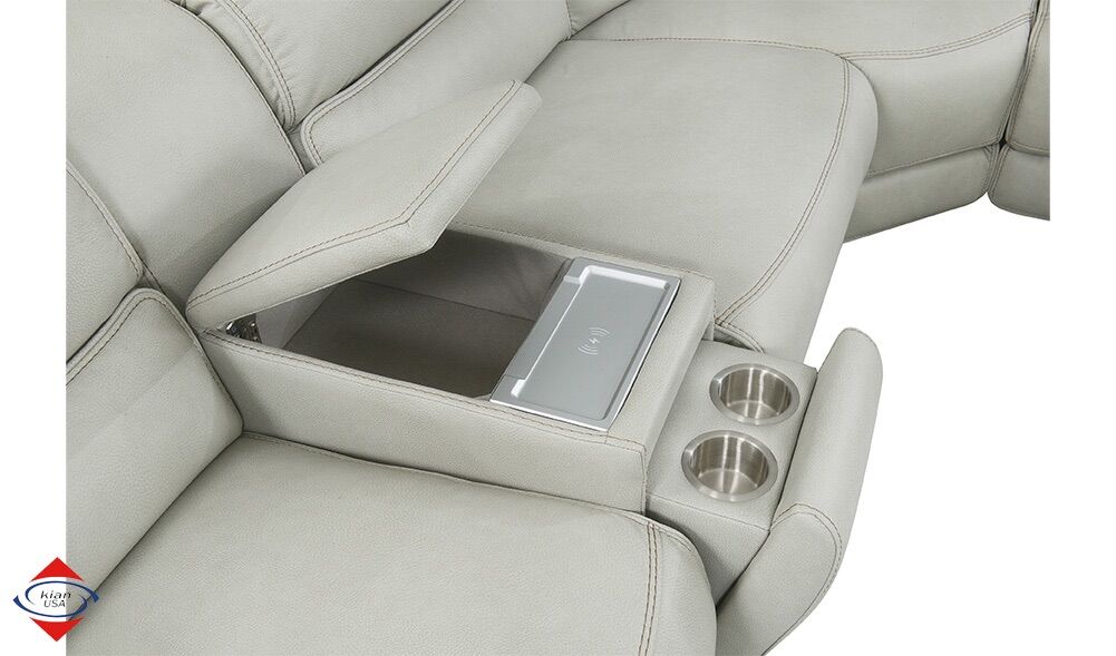 ApplePayThis beautiful sleek sectional has 6 pieces, 3 full power adjust seats. Waterproof. Hidden stainless steel cupholders. Wireless phone charger. Extended recliner with zero gravity.