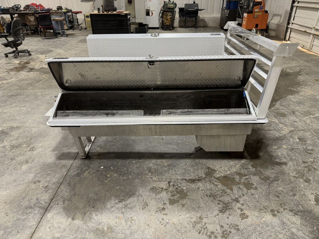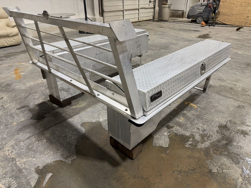 Pro tech contractor box. Has full bed frame, two side boxes and a headache rack. Super nice setup. Measurements are in the pictures.