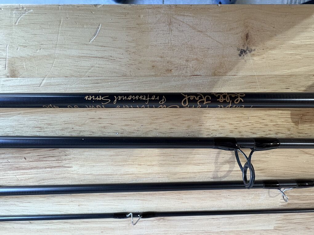 TFO Lefty Kreh Professional Series fly rod – 10wt, 9’, 4‑piece. Medium‑fast action, full wells grip with fighting butt, saltwater‑safe hardware. Great rod for tarpon, stripers, pike, salmon, or musky. Smooth caster, durable, and travel friendly. Rod sock included.