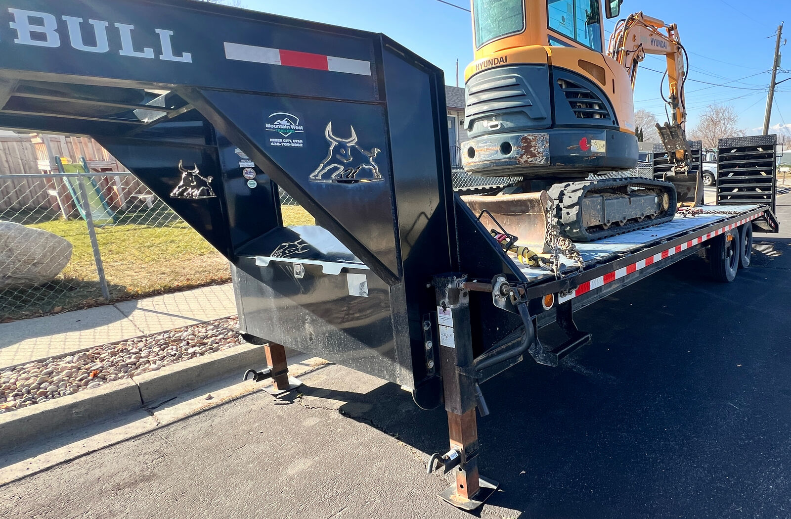 2022 Norstar, Iron Bull, gooseneck, 14,000 lb, deckover dual axle trailer, 25' long, 100" wide, heavy-duty I-Beam construction with wood deck, electric brakes, dual axle 7,000 lb each, multi-leaf slipper spring suspension, 2-5/16" adjustable gooseneck coupler, rear beavertail for easier loading, lockable full neck width tool box, rub rail, stake pockets, foldable rampage loading ramps. Financing available, call for more details.