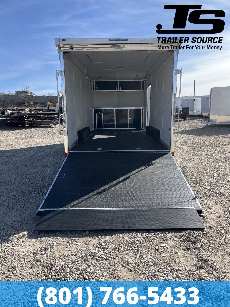 KEY STANDARD FEATURES Aerodynamic V-Front Design The Mach features a pronounced V-Nose profile rather than a flat front. The Benefit: This design significantly reduces wind drag during highway travel, improving fuel economy and towing stability for 1/2-ton and 3/4-ton trucks. Inside, the "V" provides additional square footage that is used for the integrated cabinet system. Finished "Pro-Shop" Interior The Mach comes standard with a fully finished interior, so you don't have to spend your first weekend at home painting or installing panels. The Benefit: It features 9mm White Vinyl Sidewall Liners and a White Vinyl Ceiling. This creates a bright, reflective workspace that makes it much easier to see your tools and vehicle components when working late at the track. Black Coin Rubber Flooring & Ramp Unlike standard wood floors that can soak up oil and grease, the Mach features Black Coin Rubber Overlay over 3/4" PlexCore. The Benefit: This slip-resistant surface is designed for a garage environment. It is easy to clean, chemical-resistant, and covers both the main floor and the ramp door, providing a professional look and feel from the moment you drop the door. Integrated Cabinet Package Every Mach is equipped with an Overhead and Straight Base Cabinet system in the front. The Benefit: These lightweight aluminum cabinets provide organized storage for helmets, spare parts, and tools. The base cabinet often features a "Coin Countertop" to match the floor, giving you a dedicated workbench inside the trailer. 5. 30-Amp Electrical Power Package The 2026 Mach is built to be "shore-power" ready. The Benefit: It includes a 30-Amp Motorbase Plug, a 25-foot power cord, and a power distribution panel with a converter. It comes factory-wired with 120V duplex receptacles (outlets), allowing you to run tire warmers, fans, or diagnostic laptops without a tangled mess of extension cords. LED "Night-Ops" Lighting The Mach features a superior lighting package both inside and out. The Benefit: Inside, you get high-output 12V LED Slim-Line area lights. On the exterior, Mach models have an optional Rear Spoiler with integrated LED Loading Lights, illuminating the ramp area for safe loading and unloading after the sun goes down. 5,200 lb Torsion Axles (10K GVWR) The Mach is typically built with tandem 5,200 lb Dexter Torsion axles, giving it a 9,990 lb GVWR. The Benefit: Torsion suspension offers an independent ride for your vehicle, absorbing road shock far better than leaf springs. The 10k rating is the "sweet spot" for hauling a full-sized race car, a golf cart, and all your tools while staying under the CDL weight requirements. PERFECT FOR The American Hauler Mach is the best choice for weekend drag racers, track-day enthusiasts, and mobile show-car owners. It is perfect for those who want a high-end, finished look and functional power/storage without the custom-build price tag of a professional stacker.