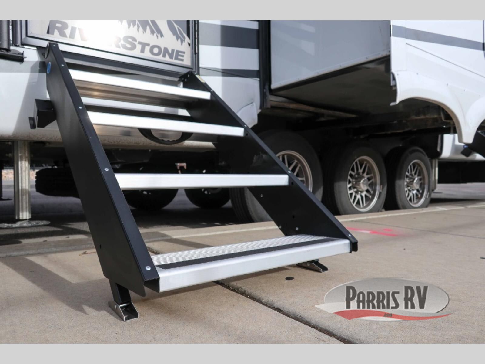 The Forest River RiverStone fifth wheels and toy haulers are luxurious units that have it all! You'll find an automatic six-point hydraulic level-up system to keep your unit in place, and there is preparation for a four-camera observation system. The TravlFi Journey XTR 4G/LTE router and WiFi extender will help you stay connected to the outside world, and you'll never have to overpack again since the Splendid "Astral" stackable washer and dryer will let you clean the small amount of clothes you've brought with you. Another high luxury is the Fischer Paykal dishwasher which will allow you to spend more time enjoying your camp life and less time cleaning up. Each unit is built with a LCI Road Armour suspension system, dual-pane frameless windows, a full docking station, a 200W solar panel, and a BMPro touch control system.