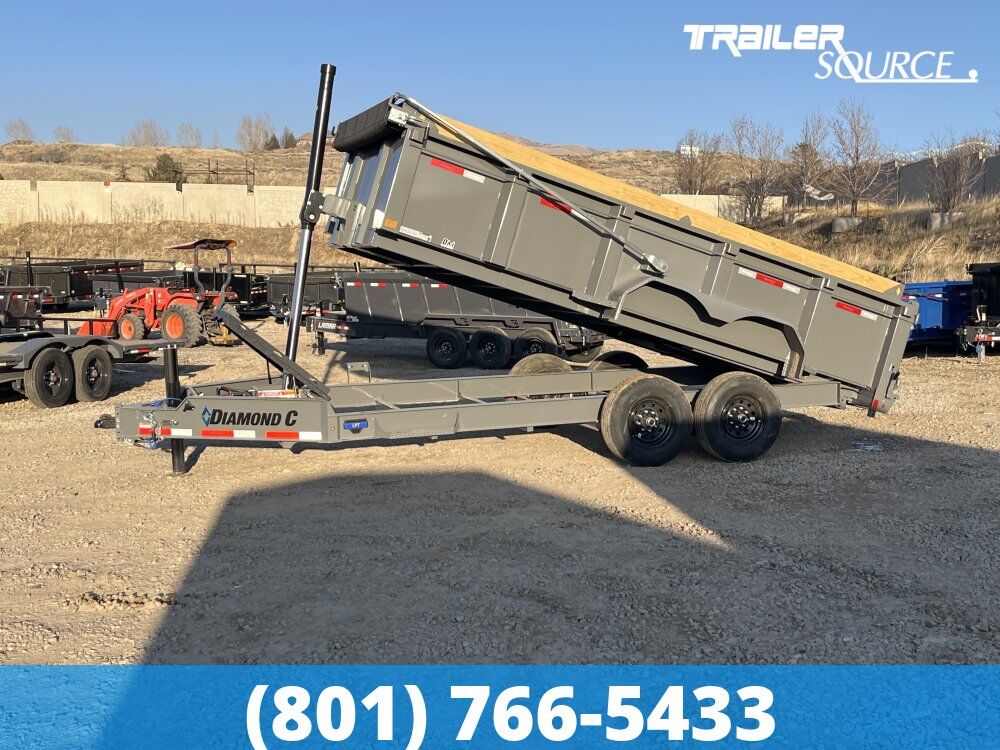 "More Trailer For Your Money" 7 x 16 Diamond C LPT 207 15.5K Dump Trailer – Ready To Work! 14 Ply Tires, Board Brackets, Long Arm Tarp