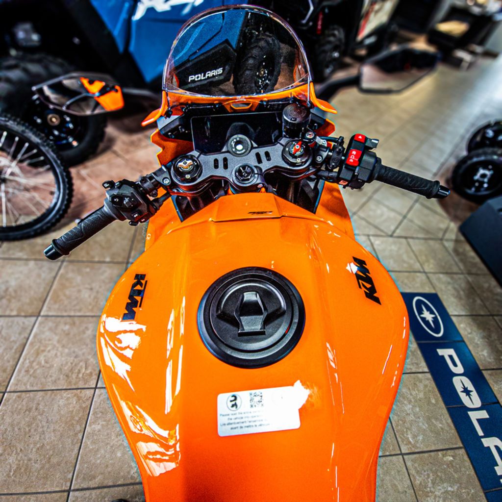 Be what you want it to be, be what you want to be. A pure-bred Supersport motorcycle like the KTM 990 RC R is a rare piece of high-tech clay, waiting to be shaped and customized for road or race. From the fully adjustable WP APEX front suspension to the movable footpegs and to the myriad of Ride Modes and settings as well as a gallery of KTM PowerParts accessories and additions, the choice is vast when it comes to dialing in the ideal sport-focused set-up. Commitment is the final ingredient to power ahead of the pack.
