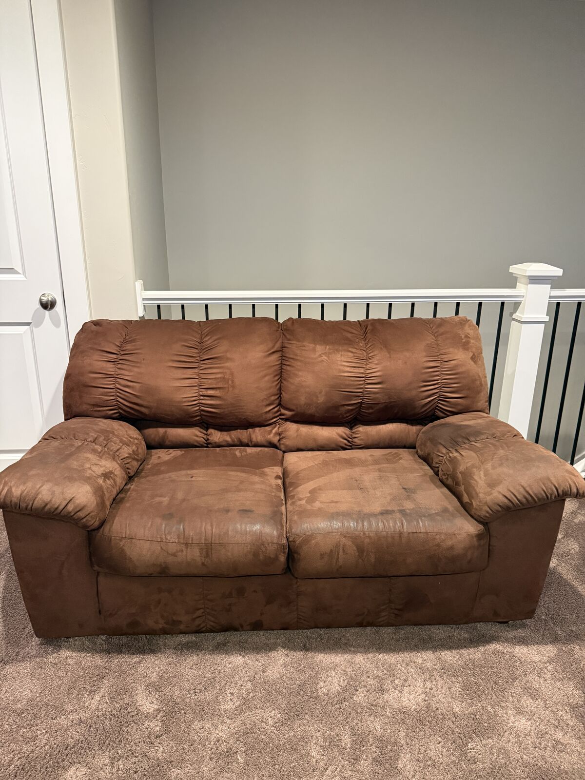 Great condition, no rips or tears. Loveseat measures 64" x 36" x 32", couch measures 90" x 34" x 34"