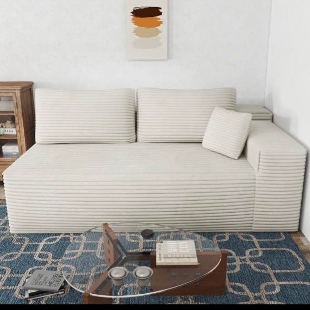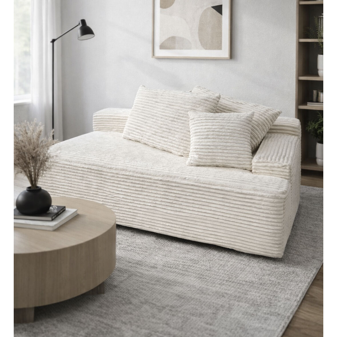 Venmo68” Cloudy Corduroy Chaise Cream white with Deep Seat, No Assembly Required, for Living Room