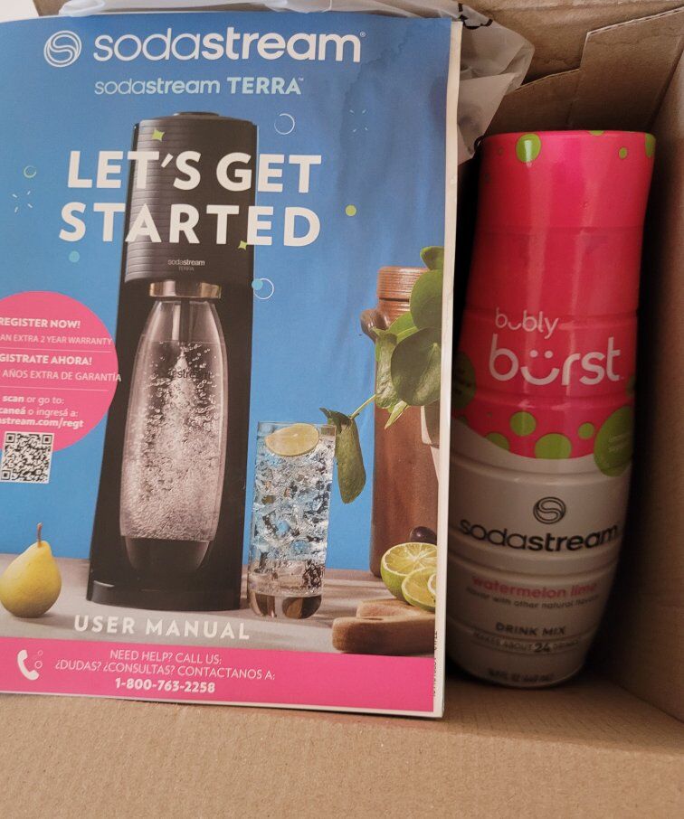 Brand new in box! Under retail and save on sales tax. Comes with bonus sodastream bubly burst watermelon lime drink mix. Cash only