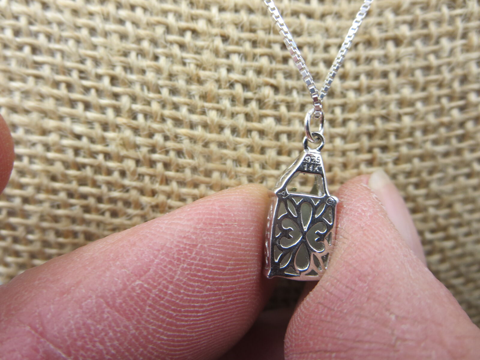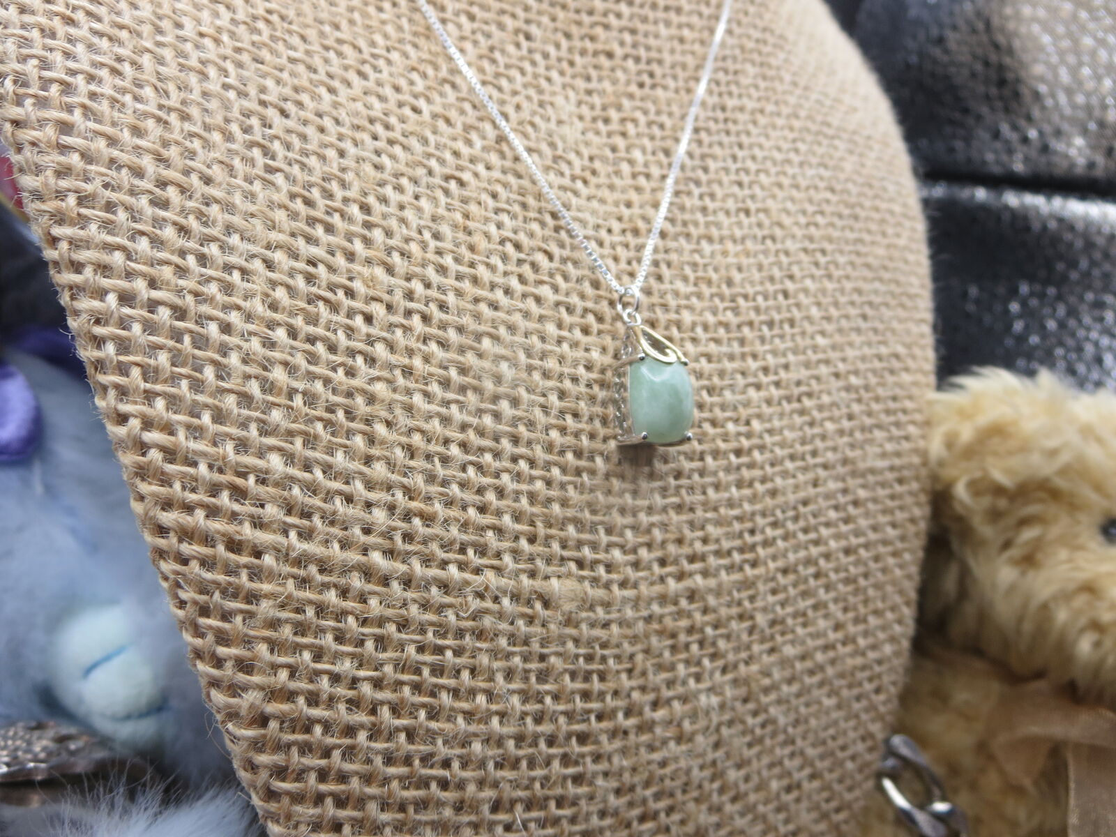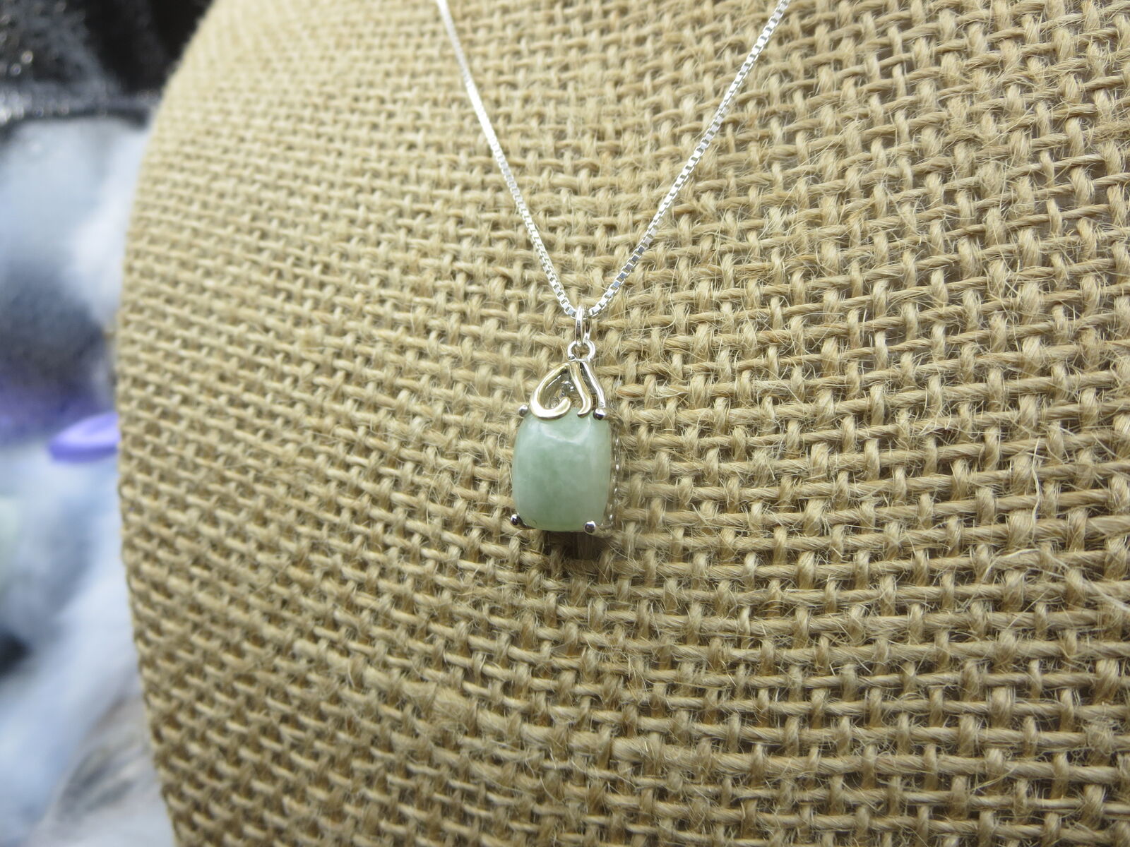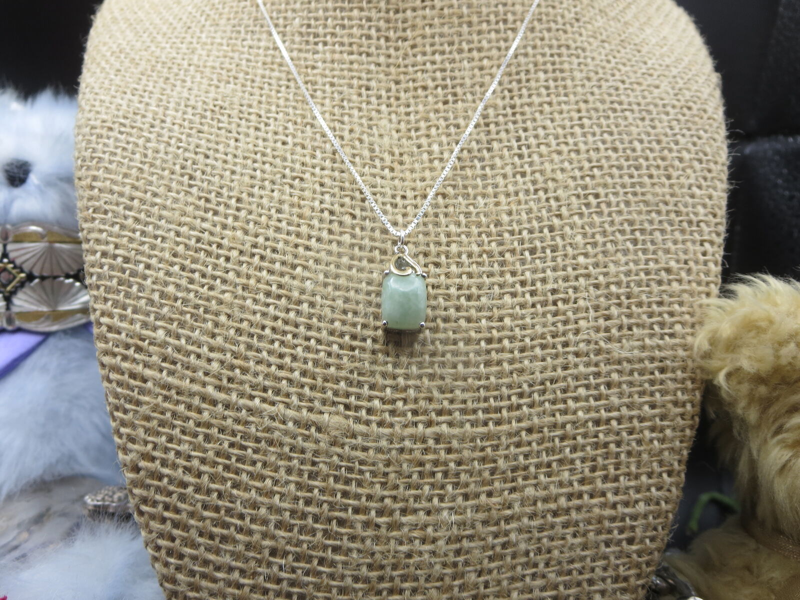 I have a. Sterling Silver Jade Jadeite square pendant with .925 18 " box necklace. For sale call or text only thanks for looking D.