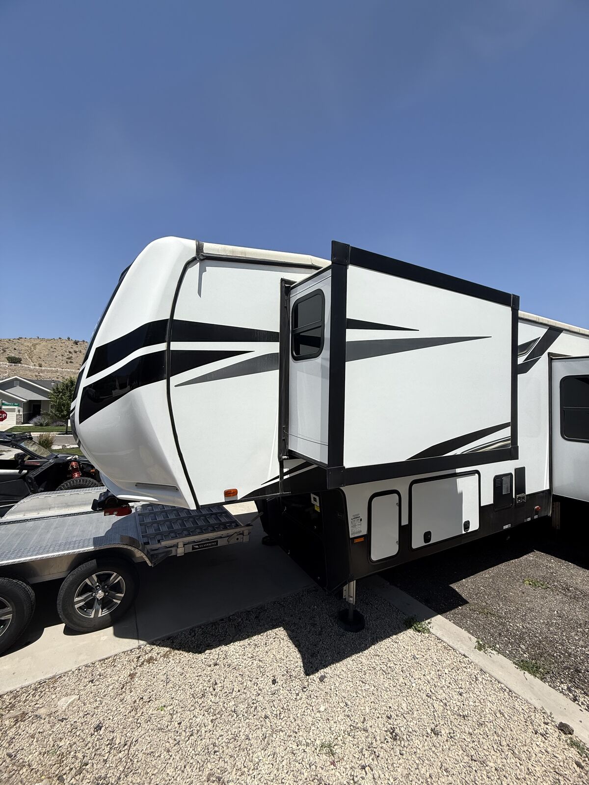I’m selling my 2022 ElkRidge 37BBH fifth wheel trailer. The trailer is in pristine condition inside and out. Brand new tires just put on. It has a hydraulic leveling system, 425 watt solar panel that keeps the brand new lithium batteries charged, trailer hitch on back of trailer so you can pull doubles. We are sad to see this trailer go but we just need something a little different for our family. Please call or text if you have questions. Thanks for looking.