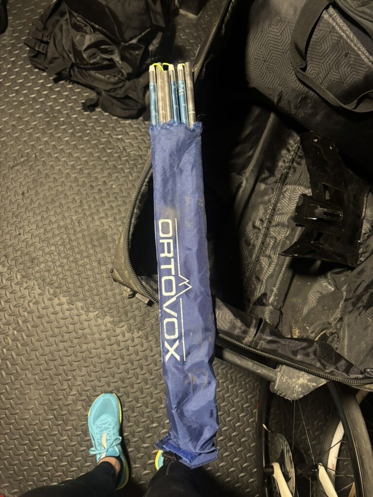 Goggles 2 Helmets small with visors and bags Bibs medium regular Vest with extra storage and water badder Boots 42.5 with bag (W10 M9) Blanket changing gear Snow probe Large gear bag